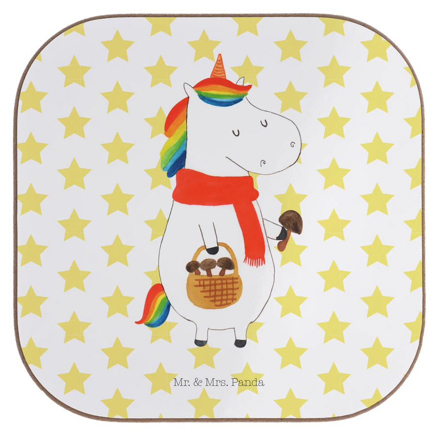 Die glänzende, hochwertige Oberfläche macht diesen Untersetzer zu einem echten Blickfang. Das süße Einhorn, das begeistert im Wald Pilze sammeln geht, zaubert jedem ein Lächeln ins Gesicht. Mit dem Spruch 'Wenn das Leben dir einen Korb gibt, geh Pilze sammeln.' bringt er Freude und Motivation in dein Zuhause.