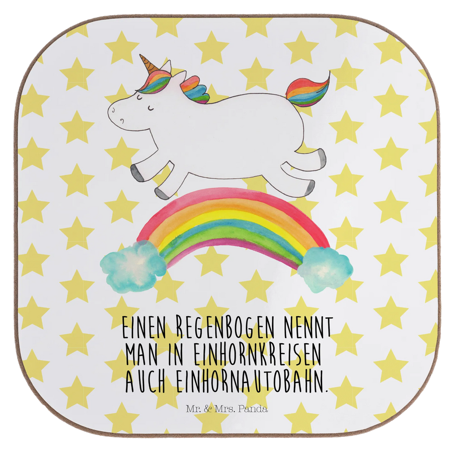 Ein wunderschöner quadratischer Untersetzer von Mr. & Mrs. Panda, bedruckt mit dem fröhlichen und zauberhaften Motiv Einhorn Regenbogen. Dieser Untersetzer ist nicht nur ein einzigartiges Accessoire für deinen Ess- und Couchtisch, sondern auch das perfekte Geschenk für all die Einhorn-Liebhaber in deinem Freundeskreis! Egal ob zum Geburtstag, zur Hochzeit oder einfach nur so, er wird große Freude bereiten.