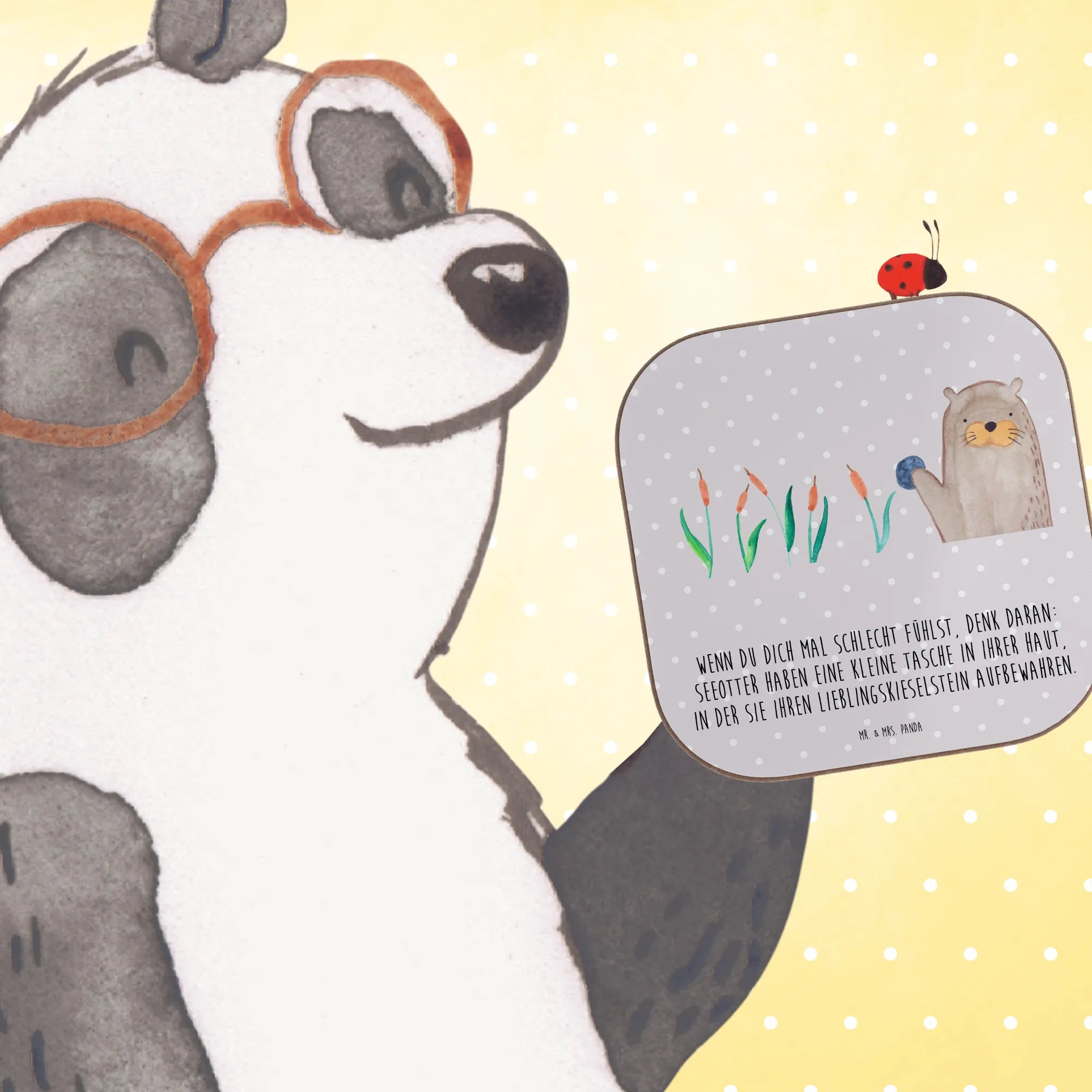 Der begleitende Spruch ist ein wahrer Seelenschmeichler: Wenn du dich mal schlecht fühlst, denk daran: Seeotter haben eine kleine Tasche in ihrer Haut, in der sie ihren Lieblingskieselstein aufbewahren. Wer kann bei so einem Gedanken nicht lächeln? Dieser Untersetzer ist Teil unserer exklusiven Otter-Kollektion. Jedes einzelne Motiv wurde von Mrs. Panda mit viel Liebe zum Detail in Aquarell handgezeichnet. Die sanften Farben und die feinen Pinselstriche verleihen dem Untersetzer eine ganz besondere, warme Ausstrahlung. ✨
