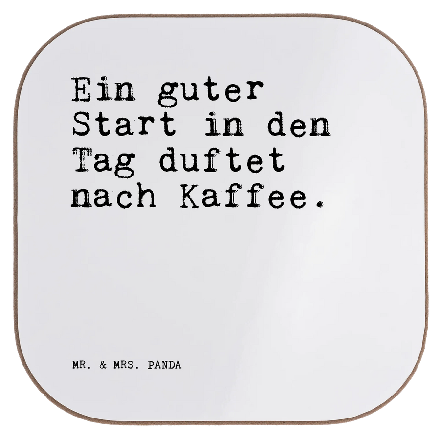 Ein wunderschöner quadratischer Untersetzer von Mr. & Mrs. Panda, bedruckt mit dem inspirierenden Spruch "Ein guter Start in den Tag duftet nach Kaffee." Dieser Untersetzer ist nicht nur praktisch, um deinen Tisch vor unschönen Abdrücken, Kratzern und extremen Temperaturen zu schützen, sondern bringt auch einen Hauch von Lebensfreude in dein Zuhause.