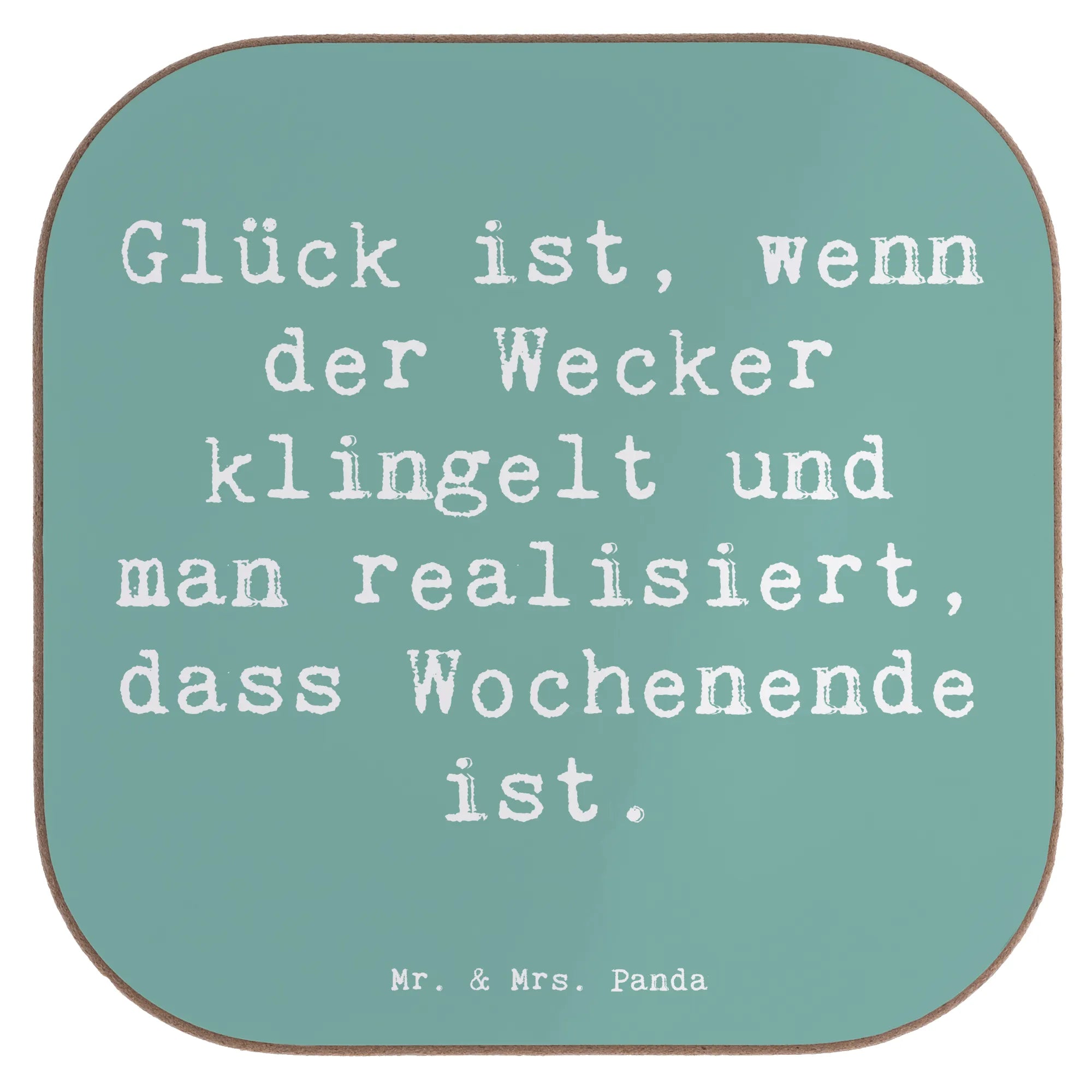 Dieser wunderschöne quadratische Untersetzer strahlt nicht nur eine positive Stimmung aus, sondern hat auch einen spritzigen Spruch: "Glück ist, wenn der Wecker klingelt und man realisiert, dass Wochenende ist." Mit den Maßen von 100 mm x 100 mm und einer Dicke von 5 mm ist er das ideale Accessoire für jeden Tisch.