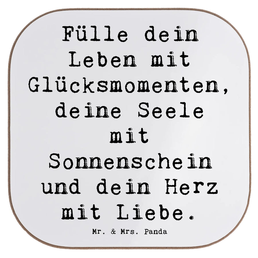 Dieser wunderschöne quadratische Untersetzer von Mr. & Mrs. Panda misst 100 mm x 100 mm und hat eine Dicke von 5 mm. Er ist perfekt, um deinen Tisch vor unschönen Abdrücken, Kratzern und extremen Temperaturen zu schützen. Mit seinen liebevoll bedruckten Motiven und Sprüchen zaubert er ein Lächeln auf jedes Gesicht. Der Untersetzer ist aus hochwertigem und stabilem Material gefertigt, das eine glänzende Oberfläche hat. Er eignet sich wunderbar als einzigartiges Accessoire für deinen Ess- und Couchtisch. Du kannst ihn mühelos mit einem feuchten Tuch reinigen, wodurch er sehr pflegeleicht ist. Dieser Untersetzer ist ein absolutes Must-Have für alle Getränke-Liebhaber und rundet jede Tischdekoration ab.