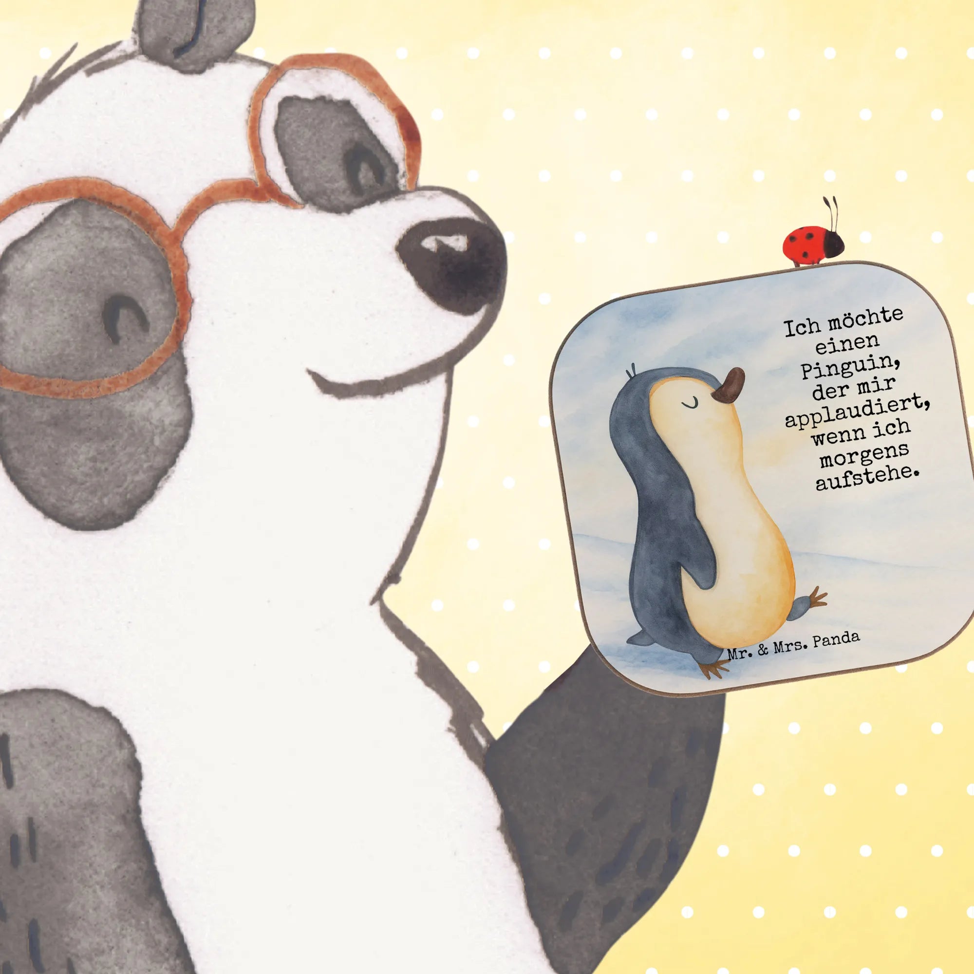 Mr. & Mrs. Panda Motiv mit Applaudierendem Pinguin - Aufmunterung für Morgenmuffel