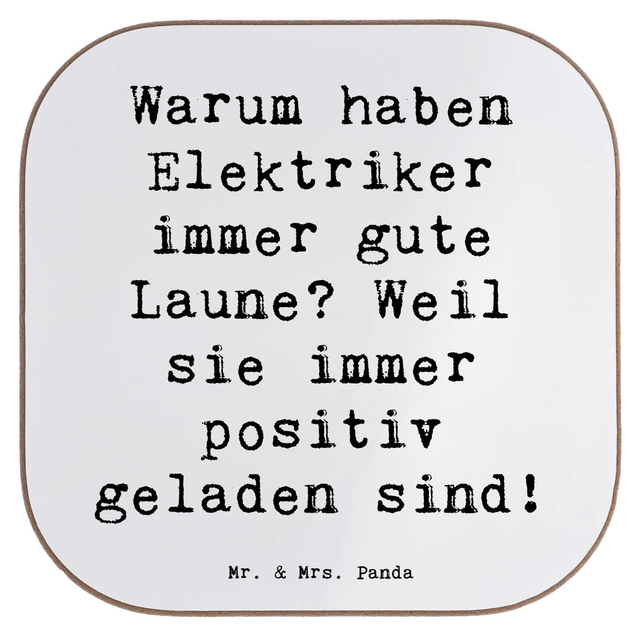 Mr. & Mrs. Panda Untersetzer „Elektriker“ – ein liebevoll gestalteter Glasuntersetzer mit frechem Spruch und Aquarell-Motiv. Warum haben Elektriker immer gute Laune? Weil sie immer positiv geladen sind! 😄 Dieser quadratische Untersetzer aus unserer Berufe-Kollektion ist das ideale Geschenk für Elektriker, Elektrotechniker, Auszubildende, Kollegen oder den handwerklich begabten Freund.