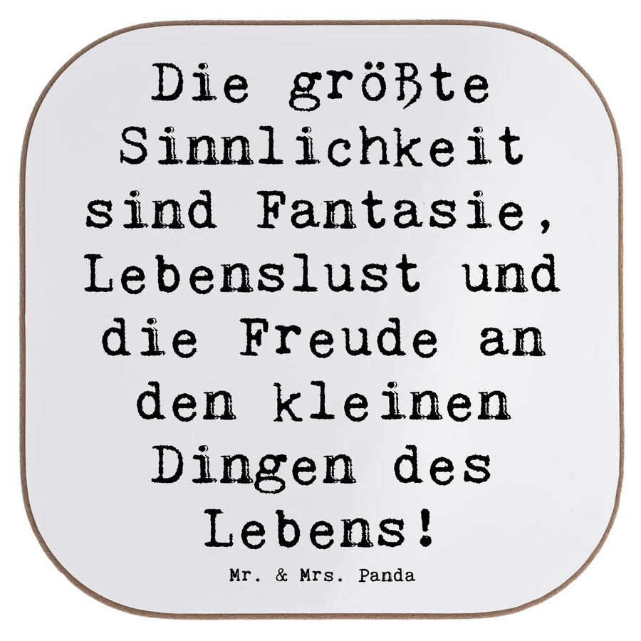 Mr. & Mrs. Panda Untersetzer „Sinnlichkeit“ – ein kleines Stück Freude für deinen Tisch. Unser quadratischer Glasuntersetzer trägt den liebevollen Spruch: „Die größte Sinnlichkeit sind Fantasie, Lebenslust und die Freude an den kleinen Dingen des Lebens!" und bringt damit sofort eine warme, motivierende Stimmung in dein Zuhause. 😊