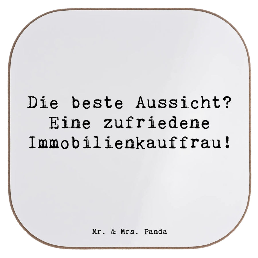 Untersetzer Spruch Die beste Aussicht? Eine zufriedene Immobilienkauffrau! - Weiß