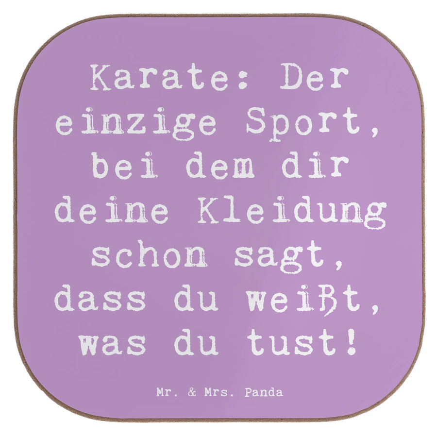 Ein quadratischer Untersetzer von Mr. & Mrs. Panda – bedruckt mit dem kultigen Spruch: "Karate: Der einzige Sport, bei dem dir deine Kleidung schon sagt, dass du weißt, was du tust!". Dieser Untersetzer ist das perfekte kleine Accessoire für alle Karate-Fans, Dojo-Mitglieder und sportliche Geschenke-Sucher. 😊