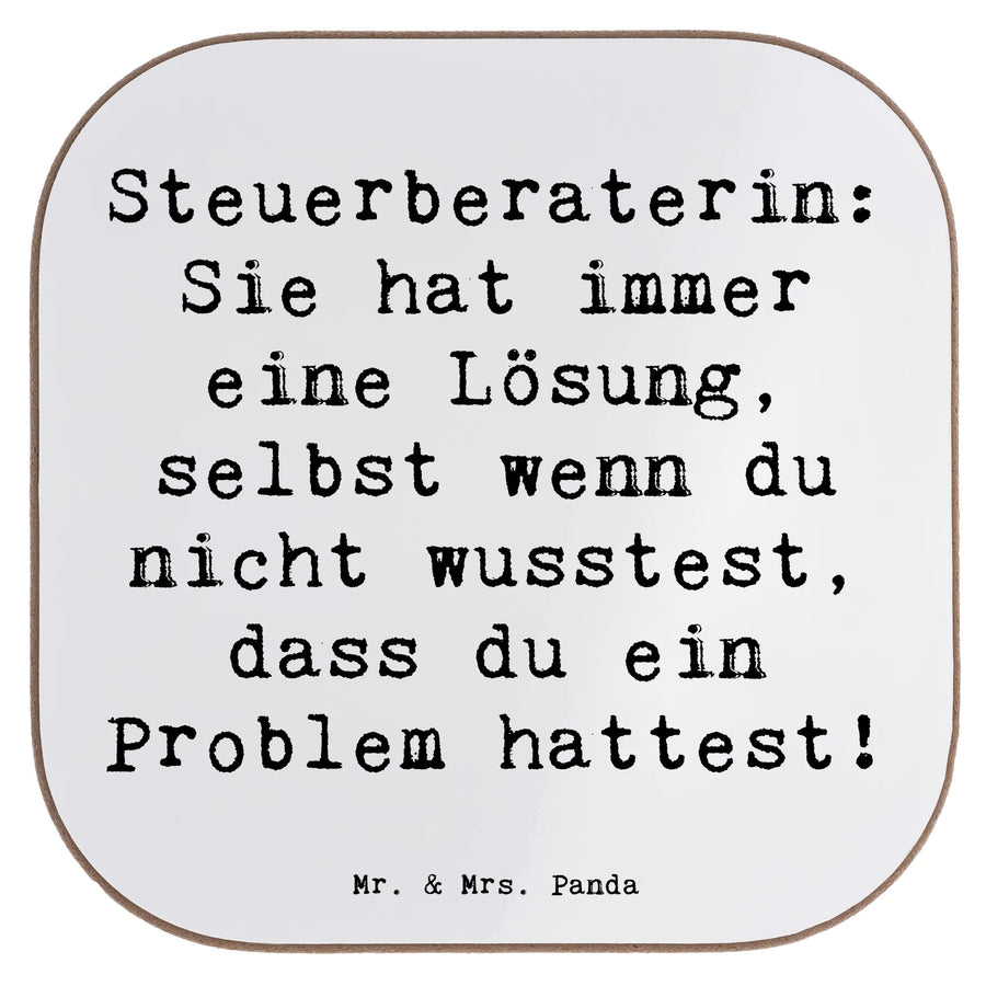 Ein hübscher Untersetzer für Steuerberaterin 😊 – Teil der liebevollen Berufe-Kollektion von Mr. & Mrs. Panda. Dieser quadratische Glasuntersetzer trägt den frechen Spruch: "Steuerberaterin: Sie hat immer eine Lösung, selbst wenn du nicht wusstest, dass du ein Problem hattest!" und sorgt für gute Laune auf jedem Schreibtisch oder Couchtisch.