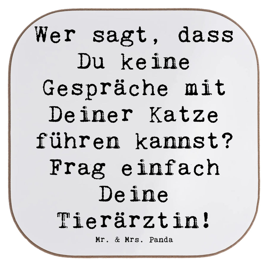 Untersetzer Spruch Wer sagt, dass Du keine Gespräche mit Deiner Katze führen kannst? Frag einfach Deine Tierärztin! - Weiß
