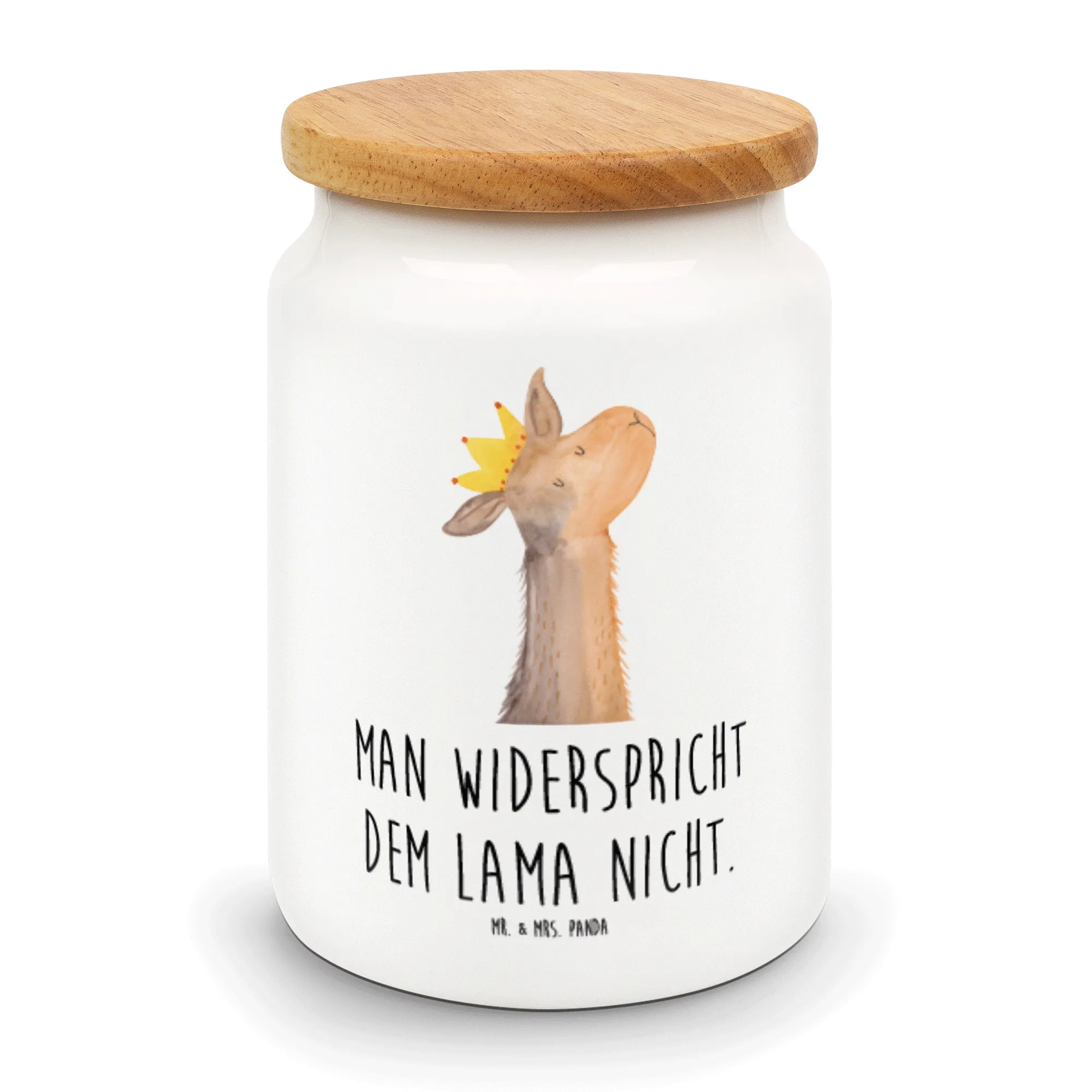 Diese hochwertige Keramikdose ist nicht nur praktisch, sondern auch ein echter Hingucker! Das wunderschöne Design zeigt ein süßes Lama mit einer Krone, und der Spruch 'Man widerspricht dem Lama nicht.' sorgt für Schmunzler und gute Laune.