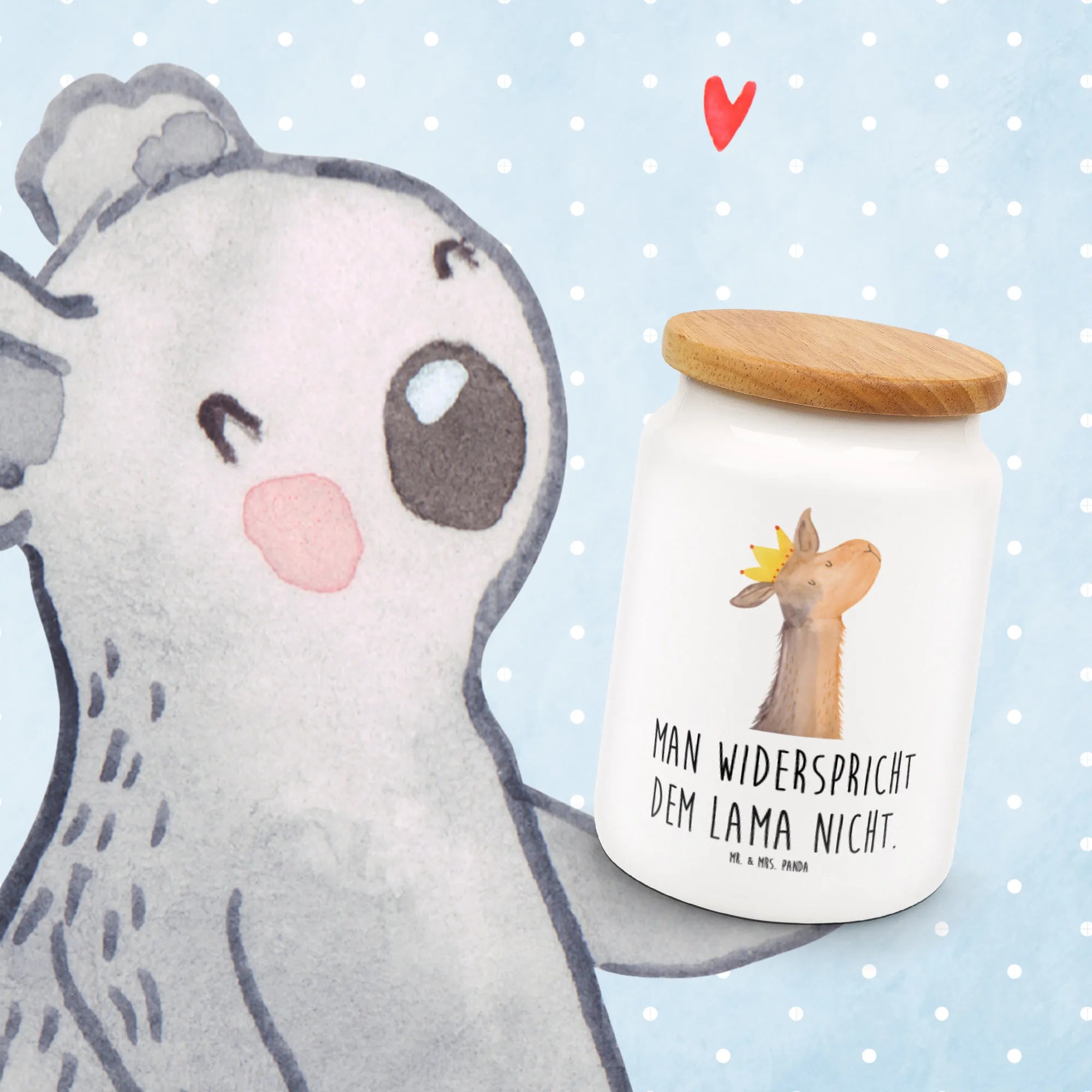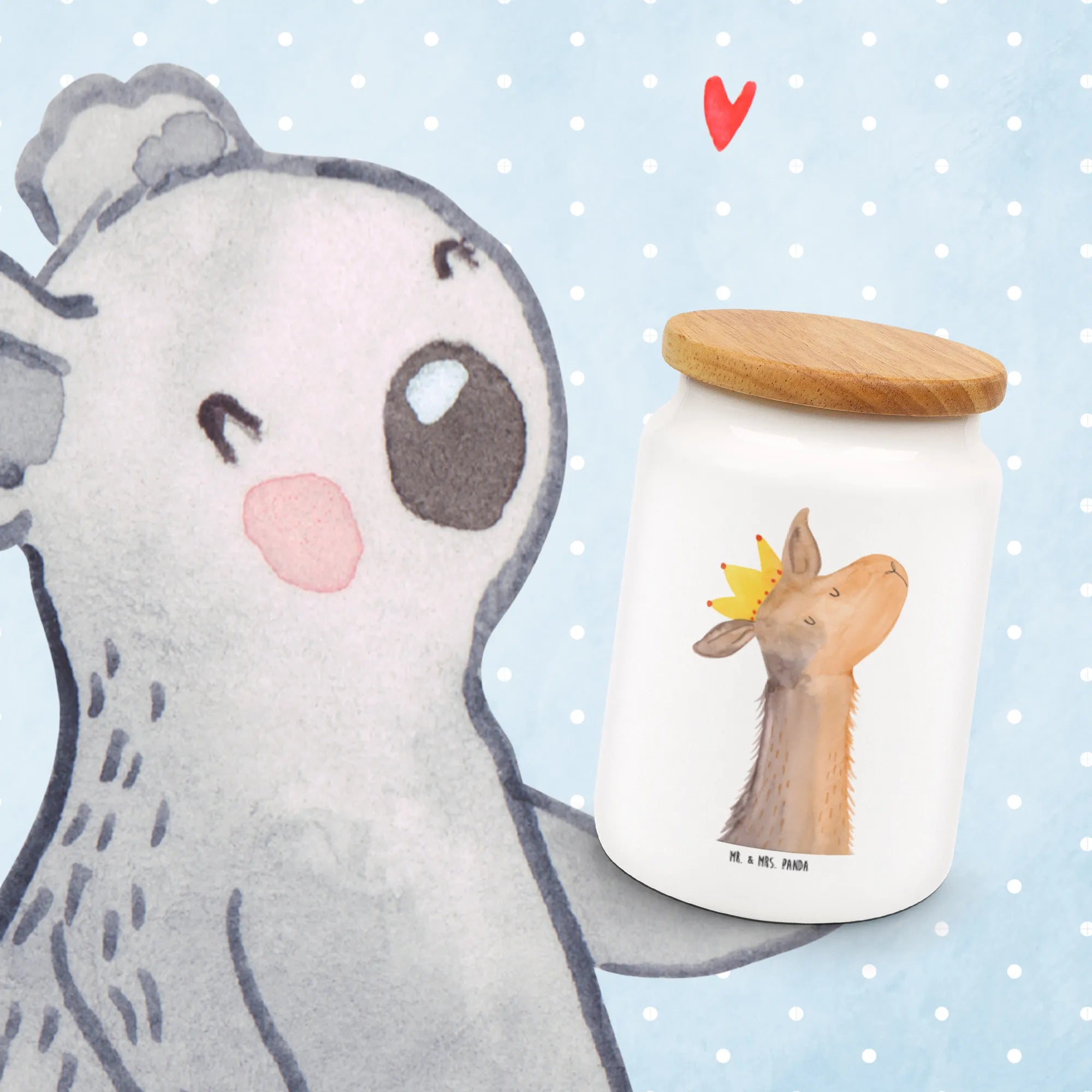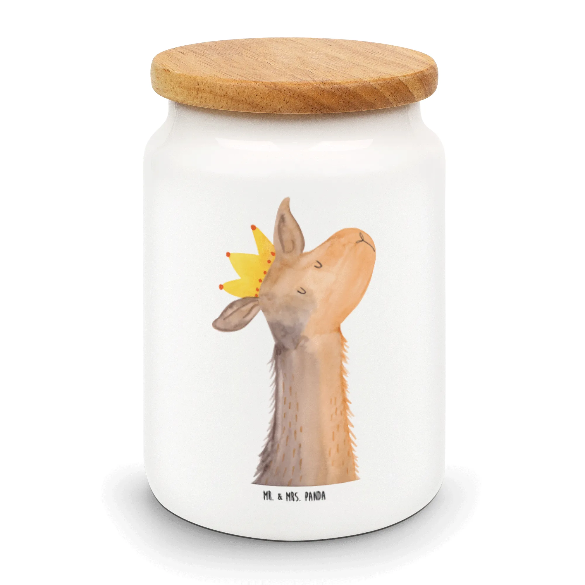 Die liebevolle bedruckte Vorratsdose mit dem süßen Lamakopf König aus der exklusiven Lama-Kollektion von Mr. & Mrs. Panda ist der perfekte Partner für jeden, der nicht nur Ordnung in der Küche halten, sondern auch ein Stückchen Freude in den Alltag bringen möchte.
