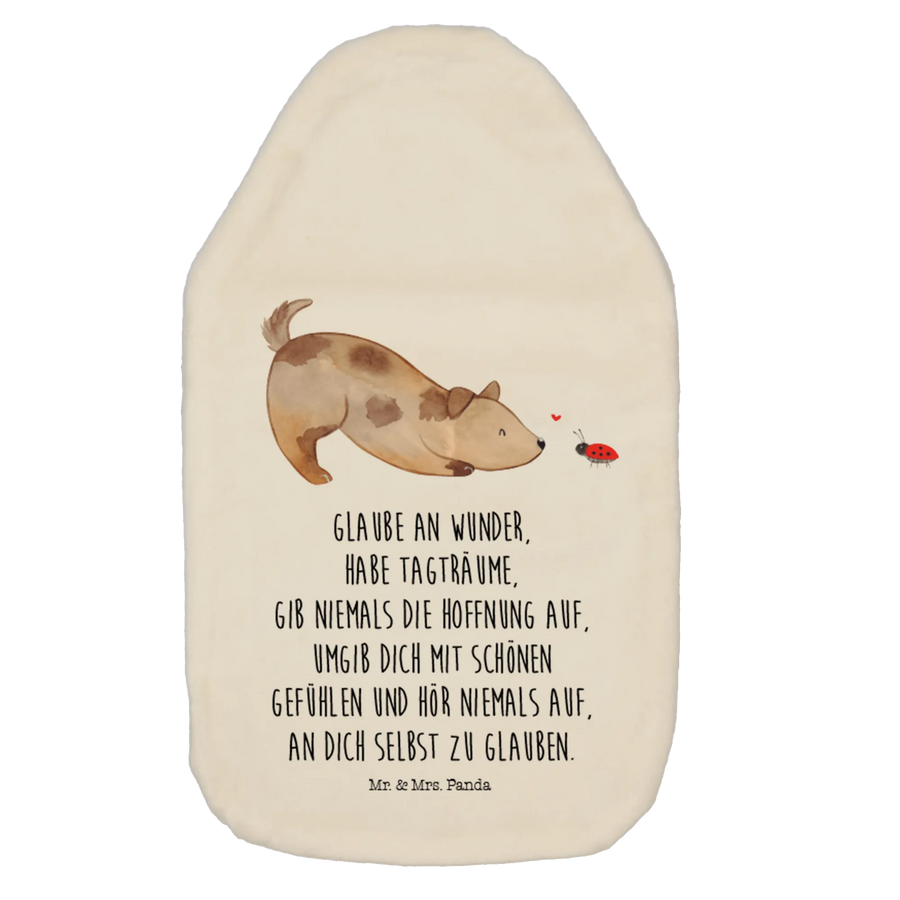 Entdecke unsere wunderschöne Wärmflasche mit dem niedlichen Hund Marienkäfer Motiv aus der Hunde Kollektion von Mr. & Mrs. Panda! Diese entzückende Wärmflasche wird nicht nur für stundenlange mollige Wärme sorgen, sondern sie ist auch das perfekte Geschenk für alle Tierliebhaber und Hundebesitzer.