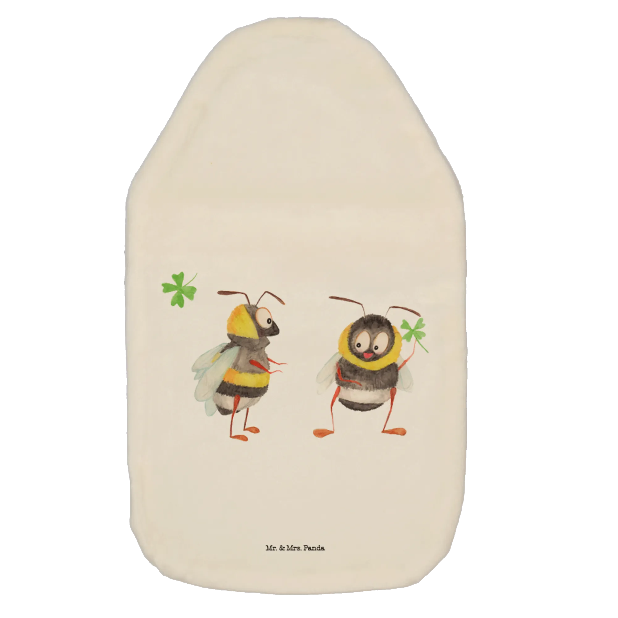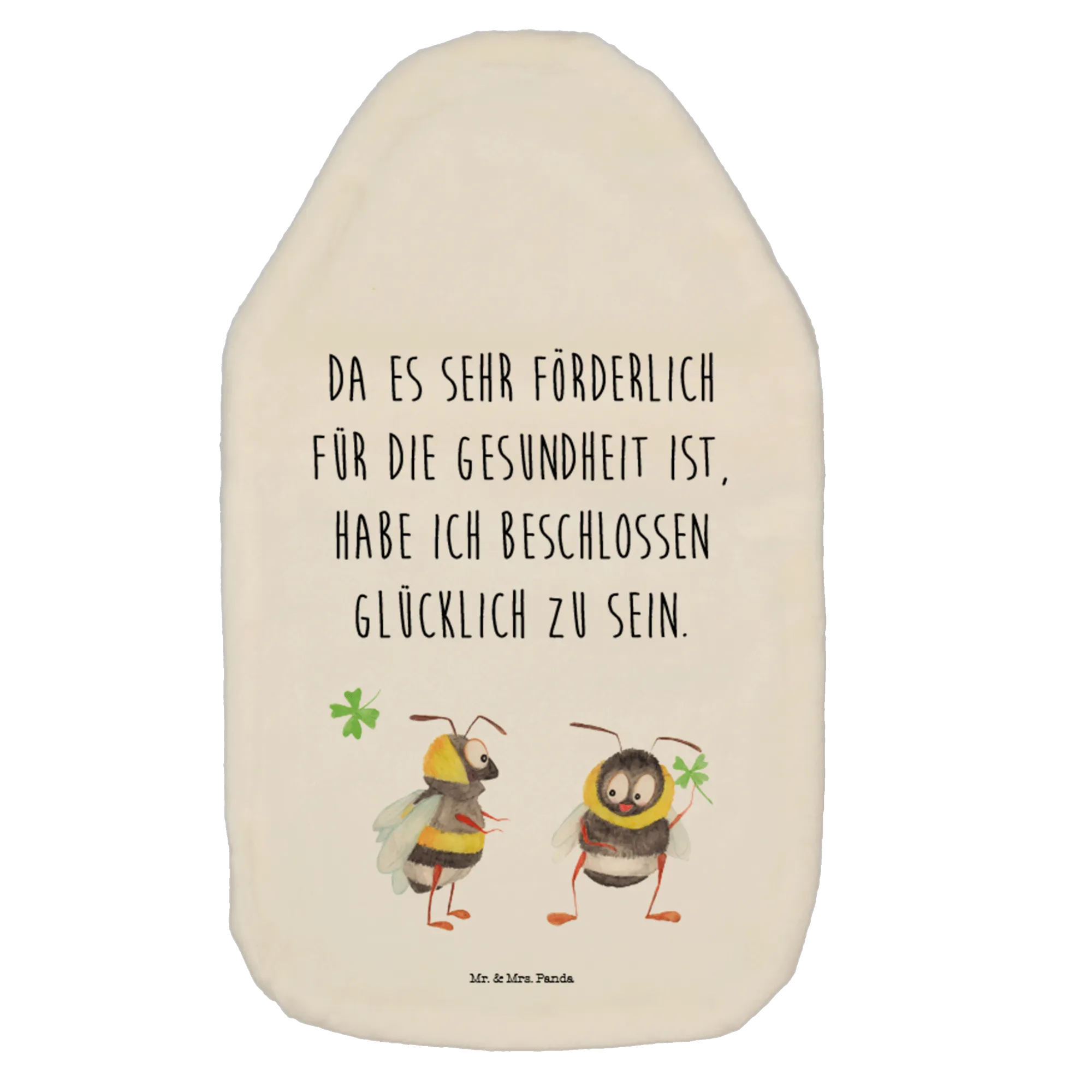 Wärmflasche Hummeln mit Kleeblatt - mit Spruch - Weiß
