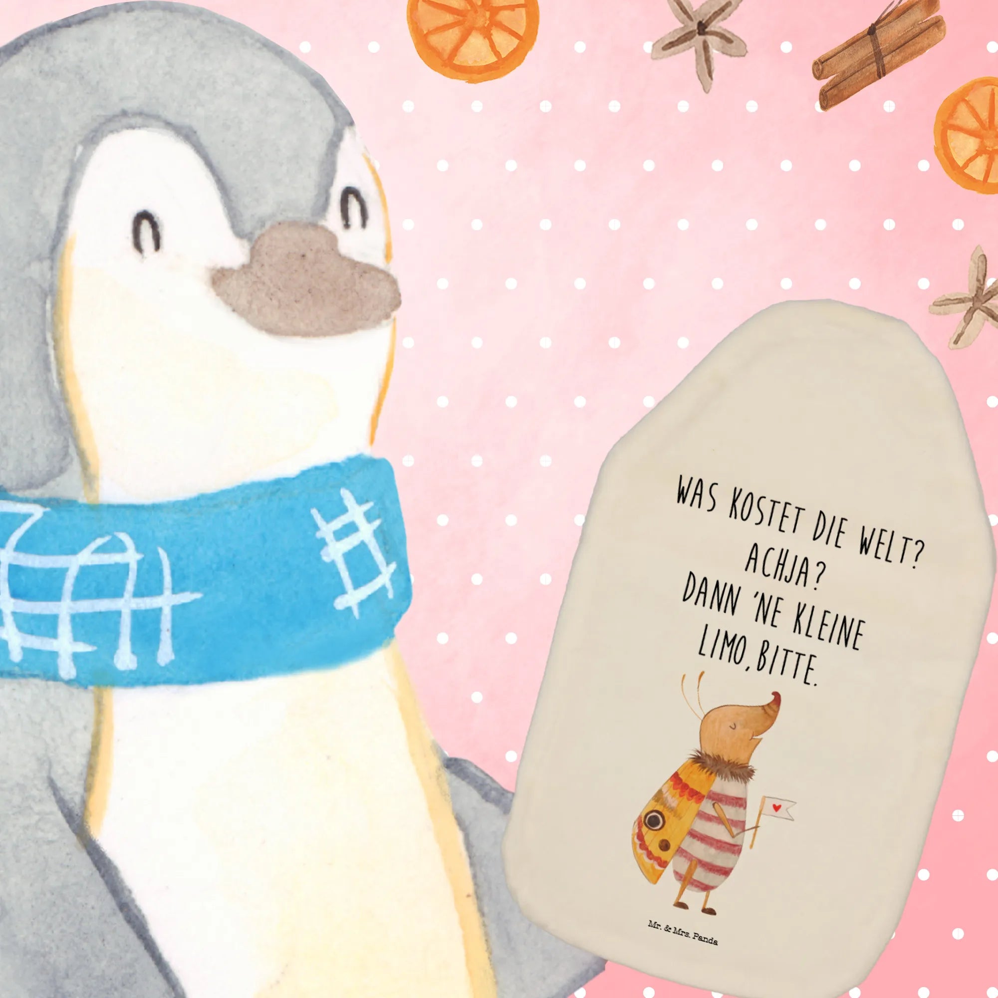 Stell dir vor, in der sanften Abenddämmerung, unter einem sternklaren Himmel, entdeckst du einen kleinen, glücklich aussehenden Nachtfalter. In seinen zarten Fühlern hält er stolz eine Fahne, auf der ein liebevoll gezeichnetes Herz prangt. Sein Blick ist neugierig und voller Freude, als würde er die ganze Welt umarmen wollen. Der Spruch 'Was kostet die Welt? Achja? Dann ne kleine Limo, bitte.' klingt wie ein fröhliches Lachen in der Stille der Nacht. Dieses Motiv von Mr. & Mrs. Panda fängt ein Gefühl von Unbeschwertheit und Glück ein, das uns im Alltag oft abhandenkommt. Es erinnert uns daran, dass die einfachen Freuden im Leben, wie die Neugier und die Freude an kleinen Dingen, unermesslich wertvoll sind. Die liebevolle Darstellung des Nachtfalters, gepaart mit dem humorvollen Spruch, ist eine Ode an die Leichtigkeit des Seins. Es ist eine Einladung, sich wieder an den kleinen Wundern des Lebens zu erfreuen, sie zu umarmen und mit einem Lächeln im Herzen durch die Welt zu gehen.