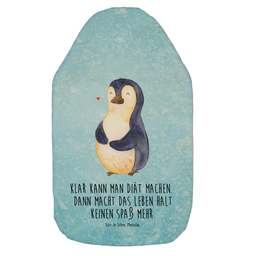 Wärmflasche Pinguin Diät - mit Spruch - Eisblau