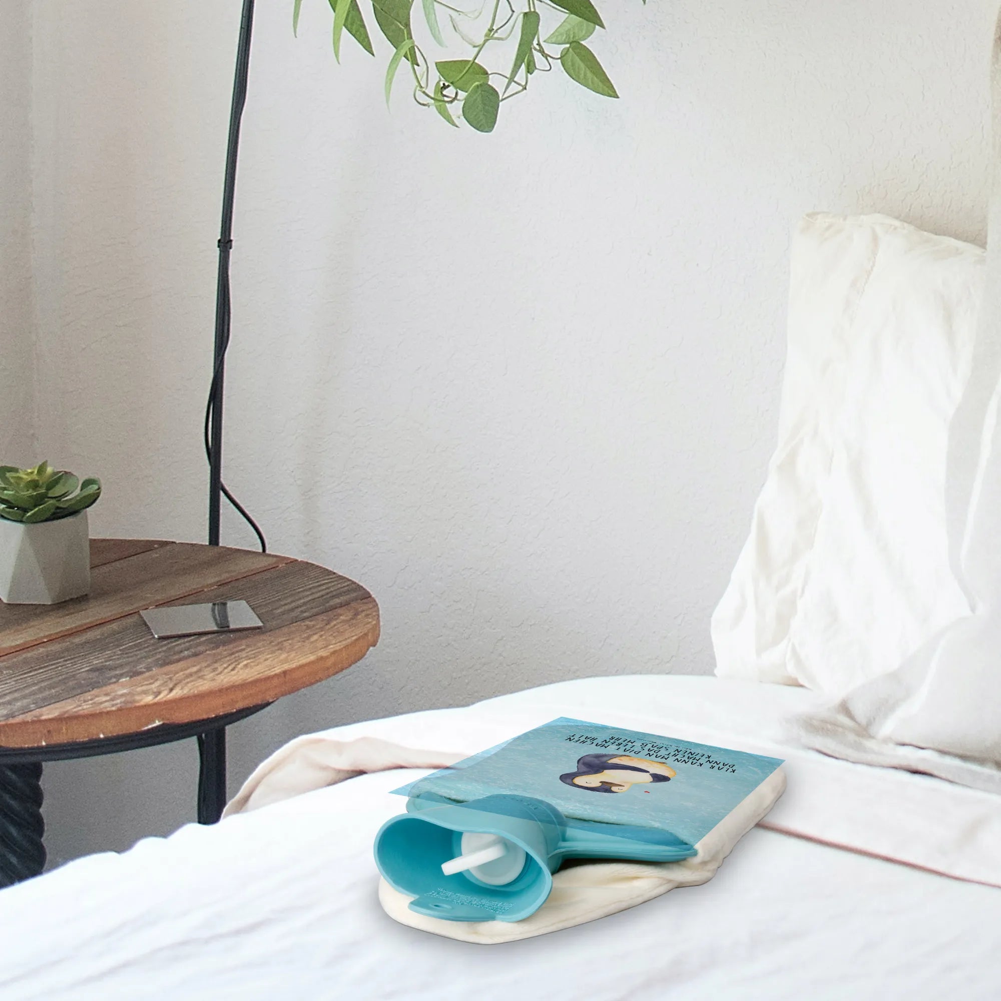 Mit der Mr. & Mrs. Panda Wärmflasche holst du dir Wohlfühlmomente nach Hause. Die Kombination aus hochwertigem Naturkautschuk und einem flauschigen Bezug in den Maßen 295 mm x 170 mm und mit einer Füllmenge von 800 ml sorgt für eine gleichmäßige und langanhaltende Wärme. Die Wärmflasche, geschmückt mit liebevollen Motiven und Sprüchen, wird schnell zu einem unverzichtbaren Begleiter. Der Bezug ist abnehmbar und lässt sich bei 30°C waschen, was die Handhabung besonders einfach macht. Ob als sanfte Einschlafhilfe oder für gemütliche Stunden auf dem Sofa, diese Wärmflasche bietet Komfort und Wärme. Bitte beachte, sie nicht mit kochendem Wasser zu füllen.