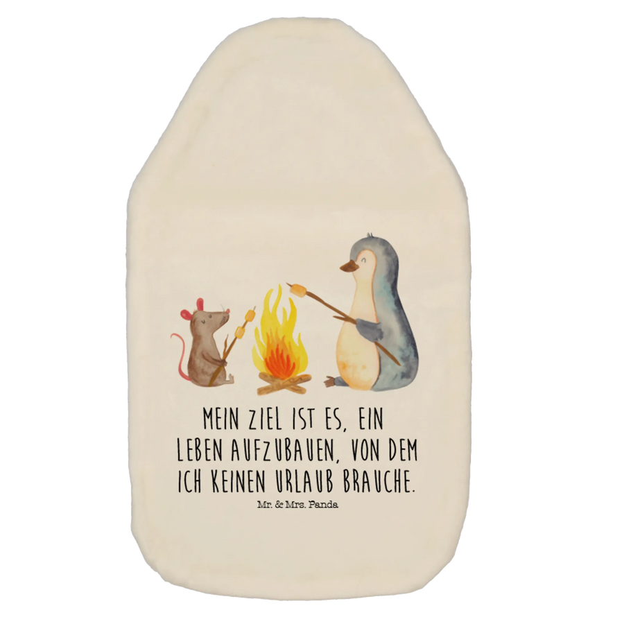 Wärmflasche Pinguin Lagerfeuer - mit Spruch - Weiß