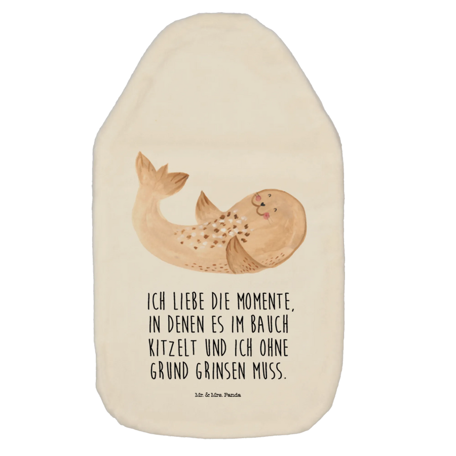 Wärmflasche Robbe Liegen - mit Spruch - Weiß