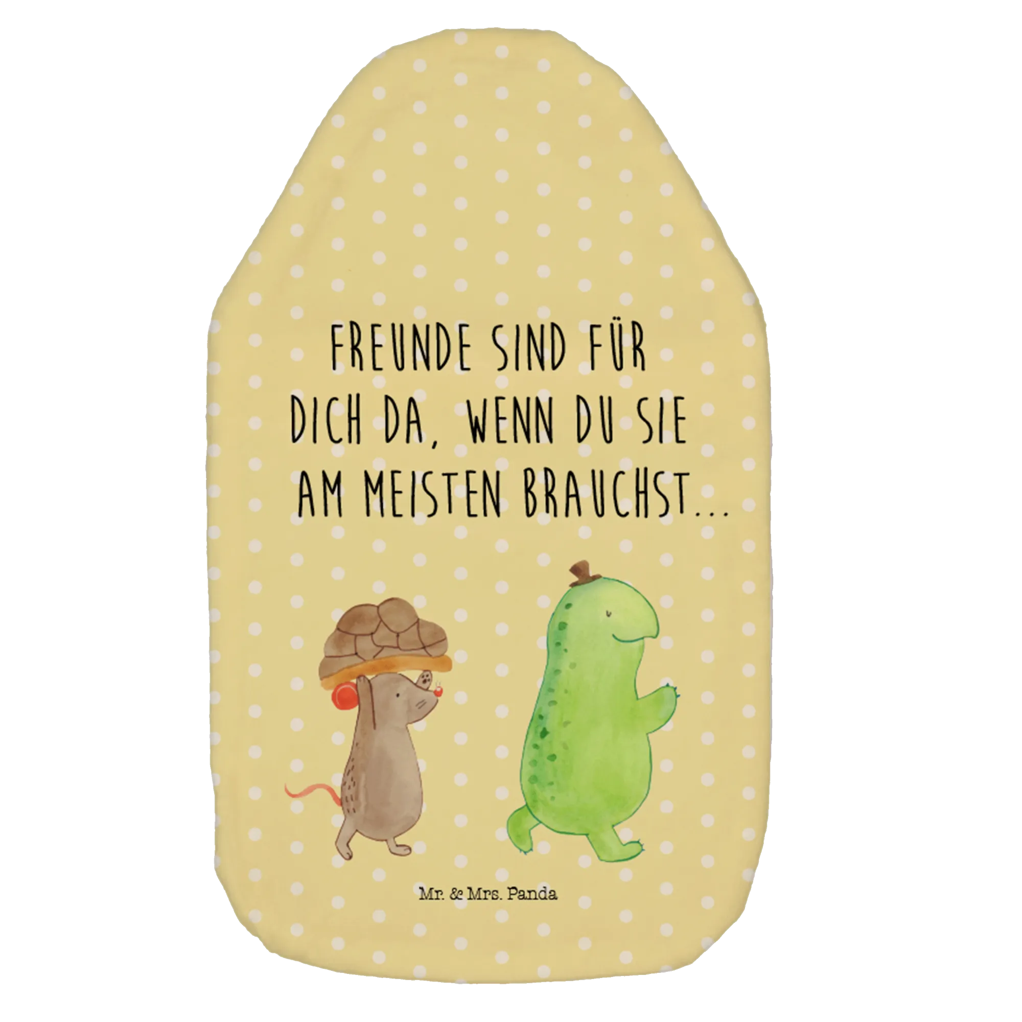 Das Motiv aus der Schildkrötenkollektion von Mr. & Mrs. Panda verzaubert mit seinen charmanten Details und dem tollen Spruch: "Freunde sind für dich da, wenn du sie am meisten brauchst...". Diese Botschaft berührt das Herz und ist perfekt für alle, die das Besondere lieben. Sie ist eine ganz besondere Kinderwärmflasche für die Kleinen oder eine Wärmflasche mit Bezug für Erwachsene.