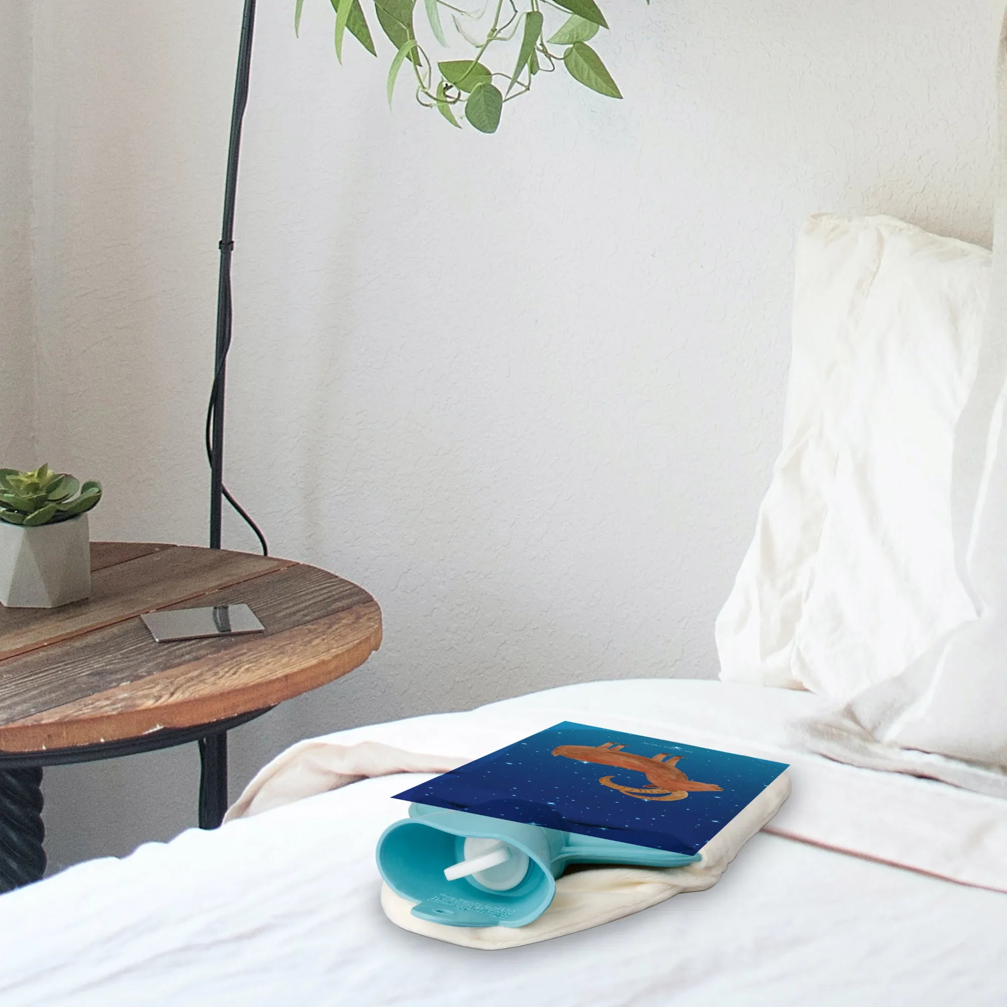 Hergestellt aus hochwertigem Naturkautschuk und mit einem abnehmbaren, flauschigen Bezug aus Kunstfaser versehen, hält die Wärmflasche die Wärme für Stunden und bietet schönstes Kuschelvergnügen. Mit den Maßen von 295 mm x 170 mm und einer Füllmenge von 800 ml passt sie perfekt ins Bett, auf die Couch oder ins Kinderzimmer.