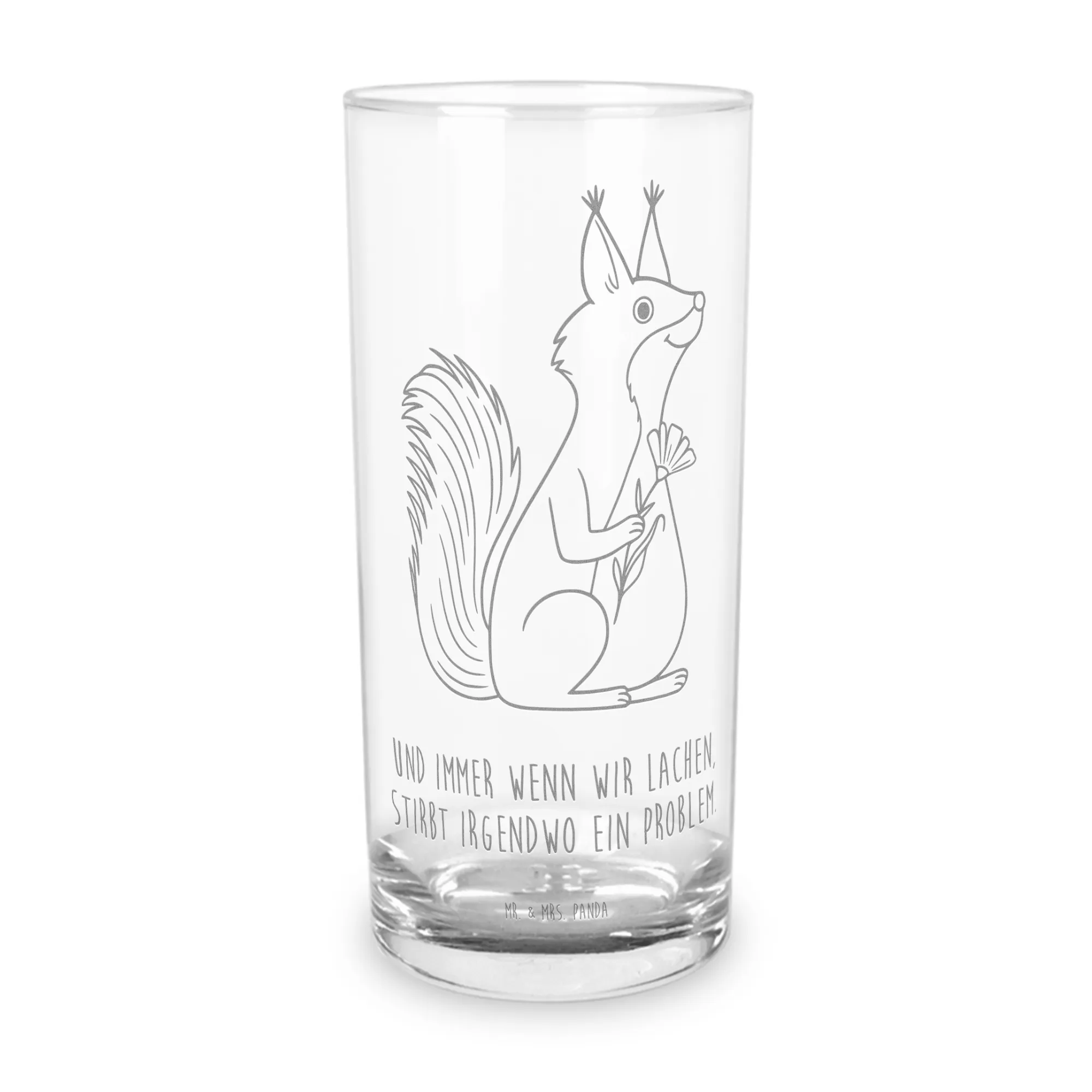 Entdecke das wunderschöne Wasserglas mit dem niedlichen Eichhörnchen-Motiv aus unserer Small World Kollektion von Mr. & Mrs. Panda! Wenn Du auf der Suche nach einem originellen Geschenk bist, das ein Lächeln in das Gesicht Deiner Liebsten zaubert, dann ist dieses Trinkglas die perfekte Wahl. Mit der inspirierenden Gravur „Und immer wenn wir lachen, stirbt irgendwo ein Problem.“ erinnert Dich dieses Glas daran, dass der Spaß und die guten Momente im Leben das Wichtigste sind.