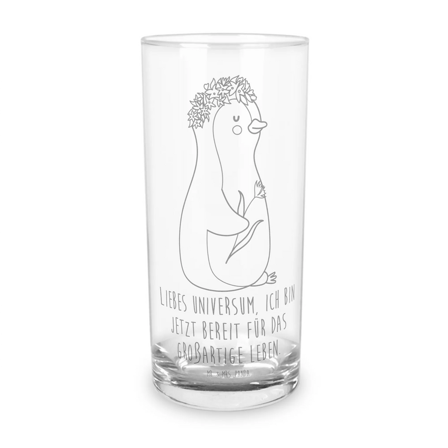 Die hochwertige Lasergravur zeigt einen niedlichen Pinguin mit einem Blumenkranz auf dem Kopf und einer Blume in der Hand, was perfekt zu Lebensfreude und Motivation passt. Jeder Schluck wird zu einem kleinen Moment der Freude und Inspiration! Denn der Slogan "Liebes Universum, ich bin jetzt bereit für das großartige Leben" (auf Produkten mit Text) bringt das Leben ins Sprudeln und erinnert uns daran, unsere Lebensziele und Träume nie aus den Augen zu verlieren.