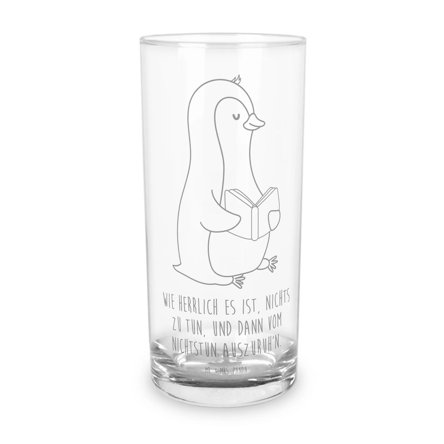 Wasserglas Pinguin Buch - mit Spruch