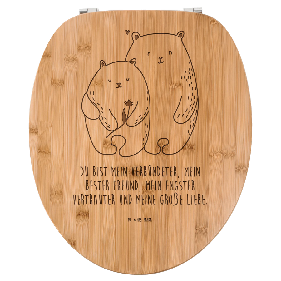 Der Mr. & Mrs. Panda WC Sitz bringt echtes Flair in dein Bad! Mit seinen charmanten Motiven und Sprüchen wird er der Mittelpunkt in deiner Toilette. Die Maße von 430 mm x 370 mm x 50 mm machen ihn universell passend. Hergestellt aus braunem Bambus Holz oder weißem MDF Holz, sorgt dieser Sitz für wohligen Komfort und ist selbst bei kühlen Temperaturen angenehm warm. Langlebiger UV-Druck und versiegeltes Holz gewährleisten, dass du lange Freude an diesem Artikel hast. Die universalen Scharniere erleichtern die Montage und das gesamte Befestigungsmaterial ist im Lieferumfang enthalten. Pflege deinen Toilettensitz ganz einfach mit einem feuchten Tuch und milder Seife. Der Mr. & Mrs. Panda WC Sitz ist das perfekte Geschenk für dich selbst oder deine Lieben!