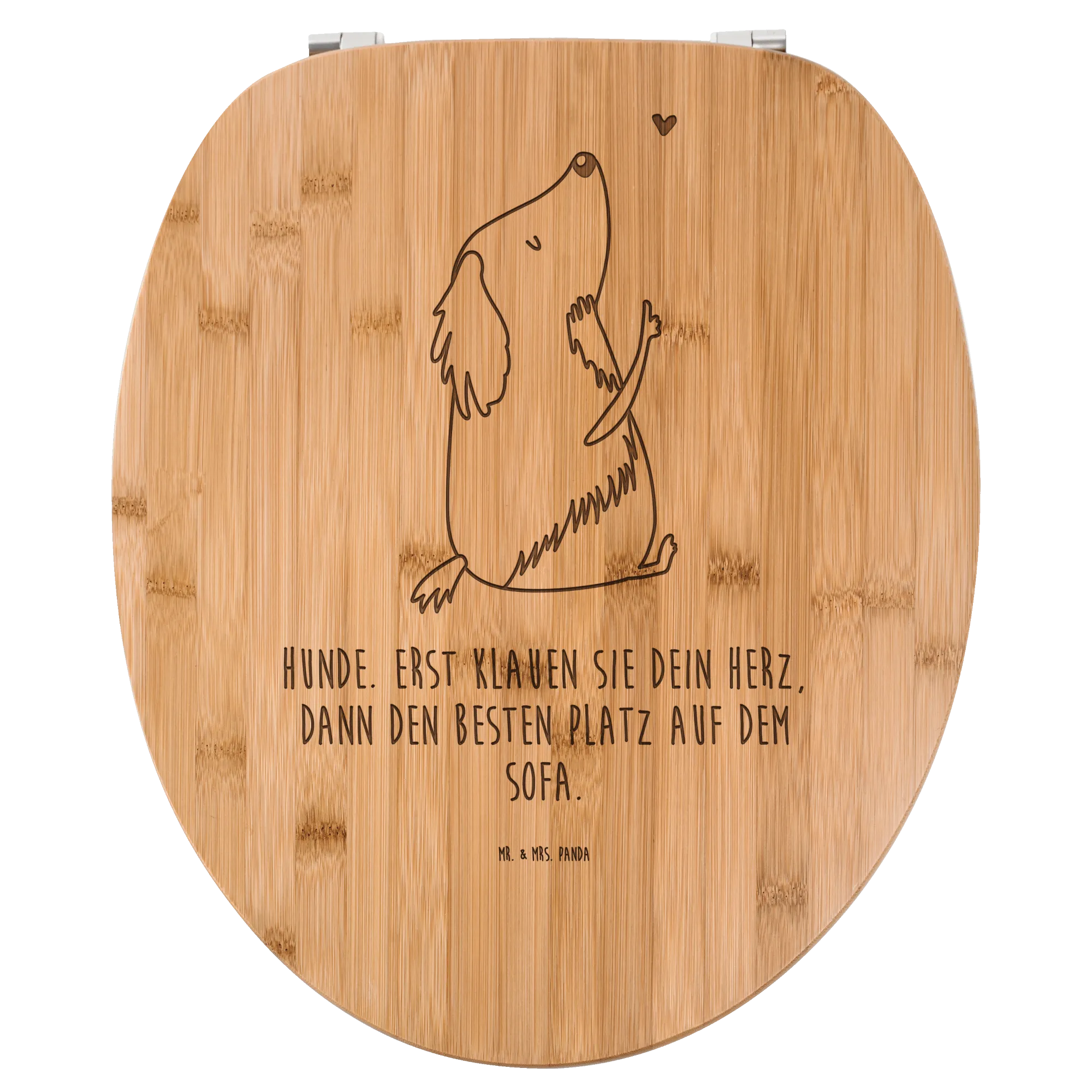 Der Mr. & Mrs. Panda WC Sitz bringt echtes Flair in dein Bad! Mit seinen charmanten Motiven und Sprüchen wird er der Mittelpunkt in deiner Toilette. Die Maße von 430 mm x 370 mm x 50 mm machen ihn universell passend. Hergestellt aus braunem Bambus Holz oder weißem MDF Holz, sorgt dieser Sitz für wohligen Komfort und ist selbst bei kühlen Temperaturen angenehm warm. Langlebiger UV-Druck und versiegeltes Holz gewährleisten, dass du lange Freude an diesem Artikel hast. Die universalen Scharniere erleichtern die Montage und das gesamte Befestigungsmaterial ist im Lieferumfang enthalten. Pflege deinen Toilettensitz ganz einfach mit einem feuchten Tuch und milder Seife. Der Mr. & Mrs. Panda WC Sitz ist das perfekte Geschenk für dich selbst oder deine Lieben!