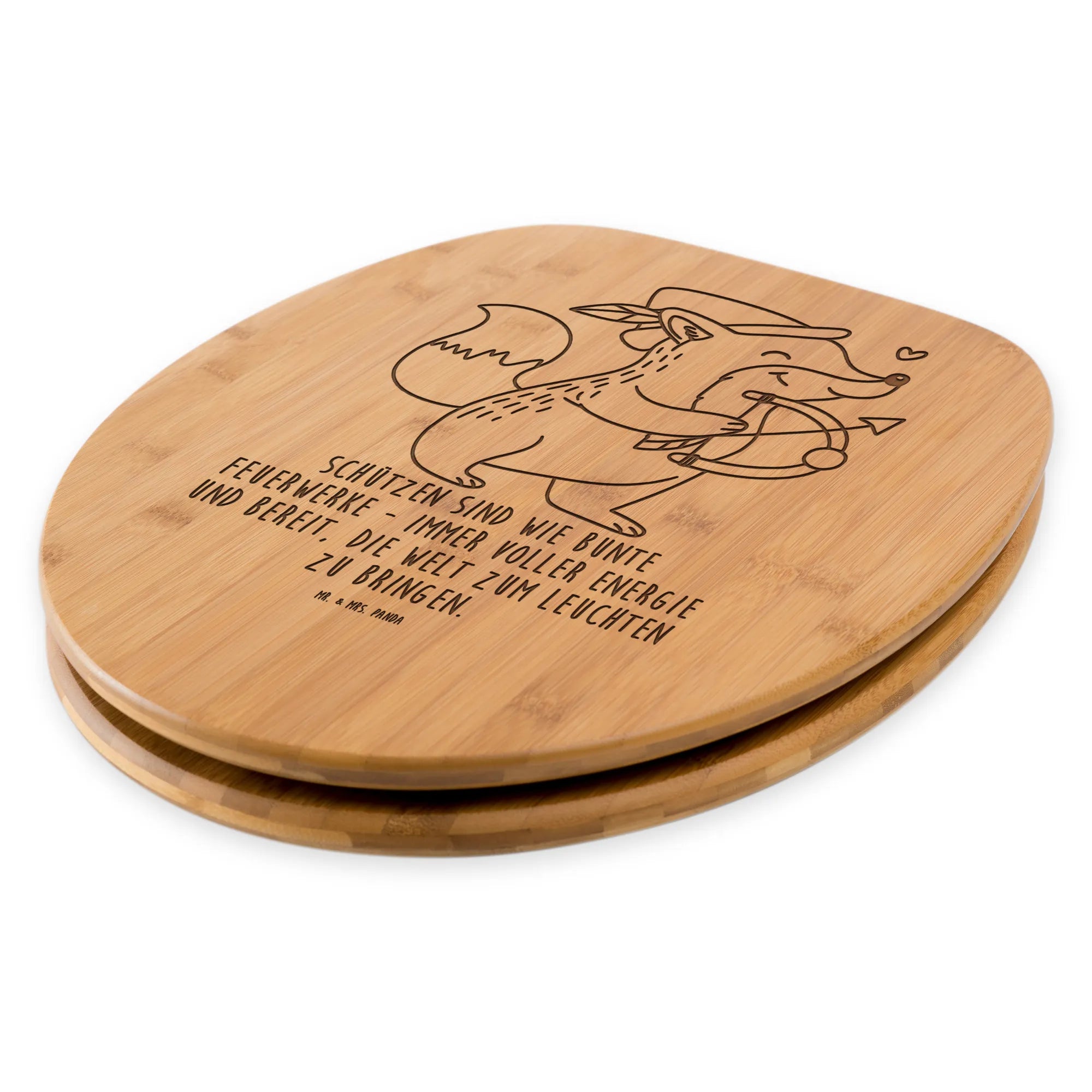 Der Mr. & Mrs. Panda WC Sitz bringt echtes Flair in dein Bad! Mit seinen charmanten Motiven und Sprüchen wird er der Mittelpunkt in deiner Toilette. Die Maße von 430 mm x 370 mm x 50 mm machen ihn universell passend. Hergestellt aus braunem Bambus Holz oder weißem MDF Holz, sorgt dieser Sitz für wohligen Komfort und ist selbst bei kühlen Temperaturen angenehm warm. Langlebiger UV-Druck und versiegeltes Holz gewährleisten, dass du lange Freude an diesem Artikel hast. Die universalen Scharniere erleichtern die Montage und das gesamte Befestigungsmaterial ist im Lieferumfang enthalten. Pflege deinen Toilettensitz ganz einfach mit einem feuchten Tuch und milder Seife. Der Mr. & Mrs. Panda WC Sitz ist das perfekte Geschenk für dich selbst oder deine Lieben!