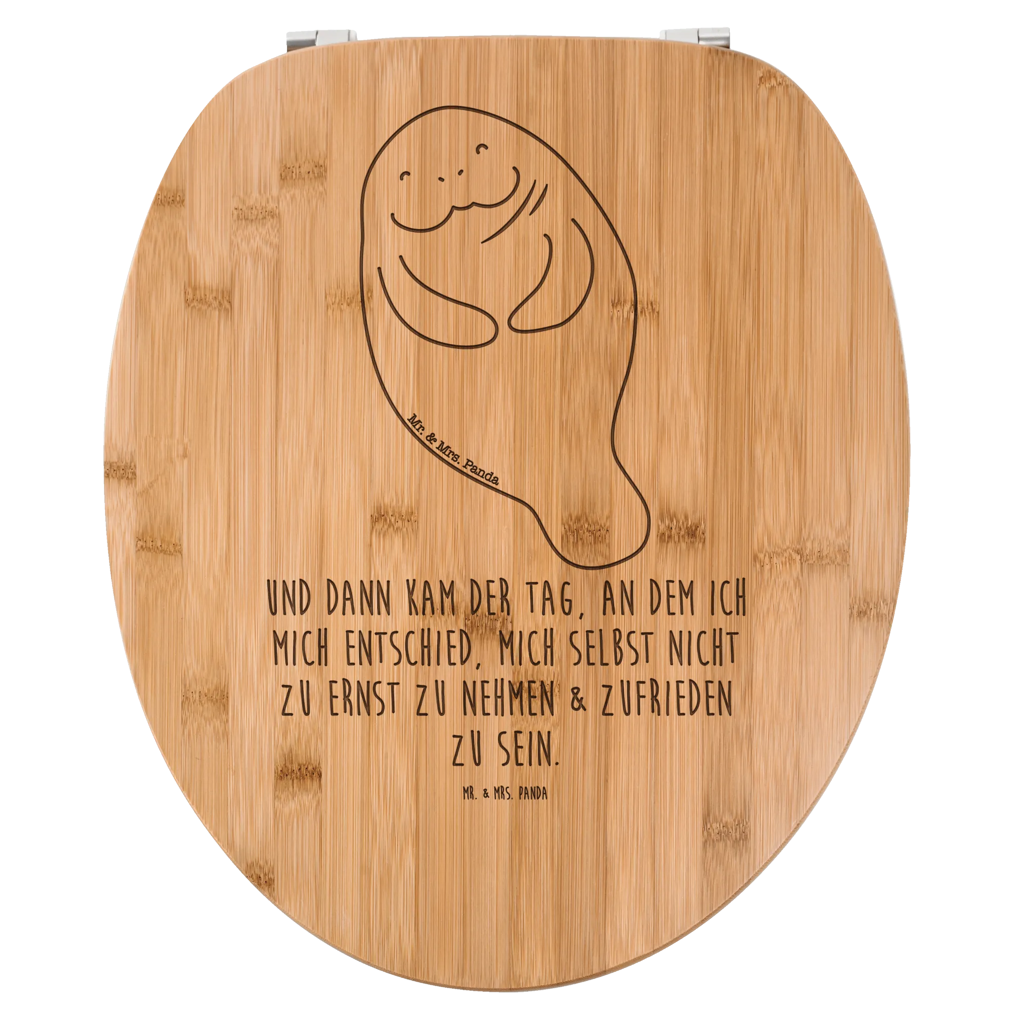 Dieser wunderschöne und praktische WC Sitz von Mr. & Mrs. Panda bringt Freude in dein Badezimmer. Er ist mit niedlichen Sprüchen und Motiven bedruckt, die deinem Klo eine ganz besondere Note verleihen. Der Toilettensitz hat die Maße von 430 mm x 370 mm x 50 mm und ist in zwei attraktiven Materialien erhältlich: braunes Bambus Holz oder weißes MDF Holz. Ganz egal, für welches Design du dich entscheidest, dieser Sitz bietet hohen Komfort und selbst bei kühlen Temperaturen bleibt die Sitzfläche angenehm warm. Dank des lang anhaltenden UV Drucks und des versiegelten Holzes ist der Sitz langlebig und pflegeleicht. Die Universalscharniere sorgen dafür, dass der Deckel auf jedes Euro-WC-Becken passt. Befestigungsmaterial ist im Lieferumfang enthalten und die Montage ist kinderleicht. Nach der Verwendung kannst du den Sitz einfach mit einem feuchten Tuch und handelsüblicher Seife abwischen. Verleihe deinem Badezimmer mit diesem einzigartigen WC Sitz von Mr. & Mrs. Panda einen Hauch von Lebensfreude!