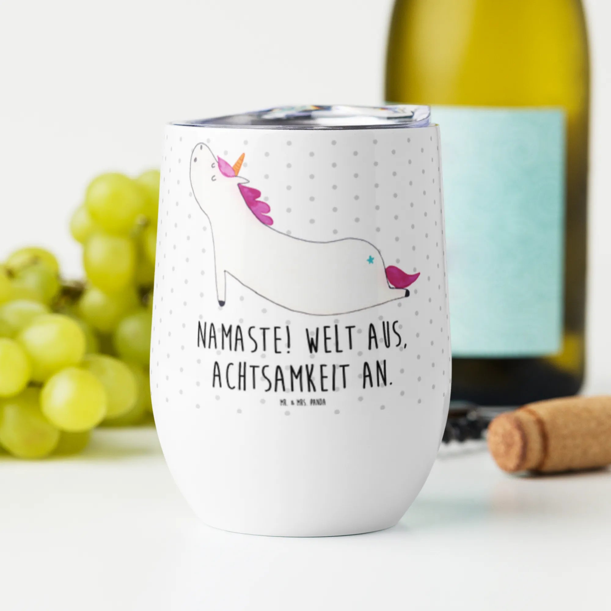 Weinbecher Einhorn Yoga - mit Spruch