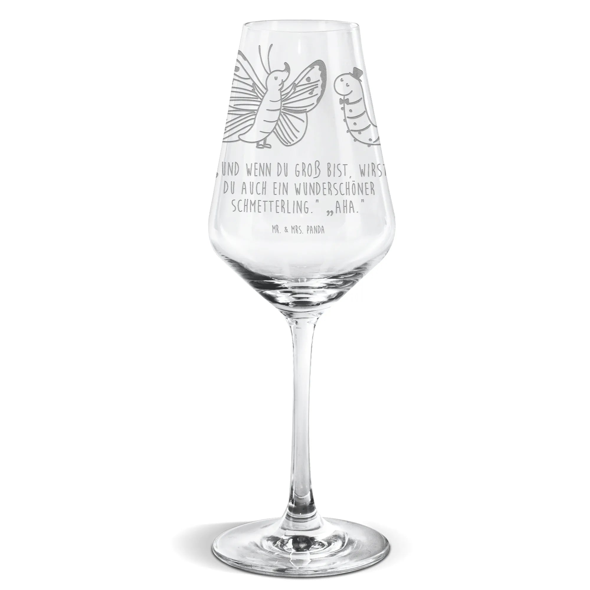Weißwein Glas Raupe Schmetterling - mit Spruch