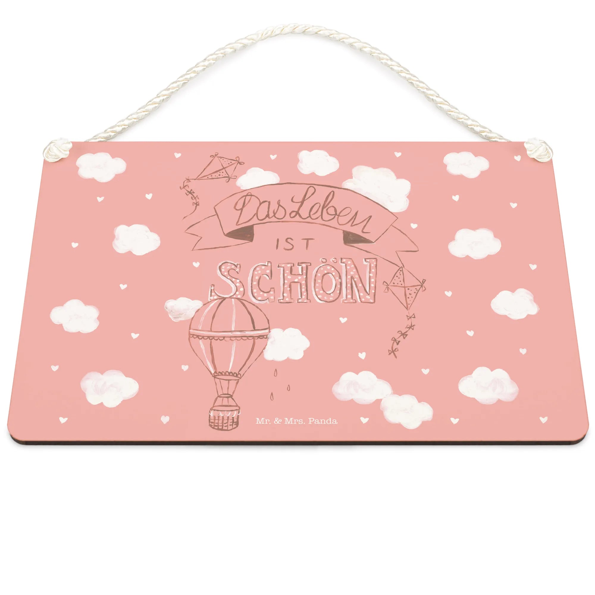Das Deko Schild mit dem wunderschönen Motiv von Heißluftballons und dem Spruch "Das Leben ist schön!" aus der Collection Wild & Free von Mr. & Mrs. Panda ist ein ganz besonderes Stück für dein Zuhause. Egal ob in schweren oder in guten Zeiten, dieses Schild erinnert uns daran, dass das Leben so viele wunderbare Dinge zu bieten hat.