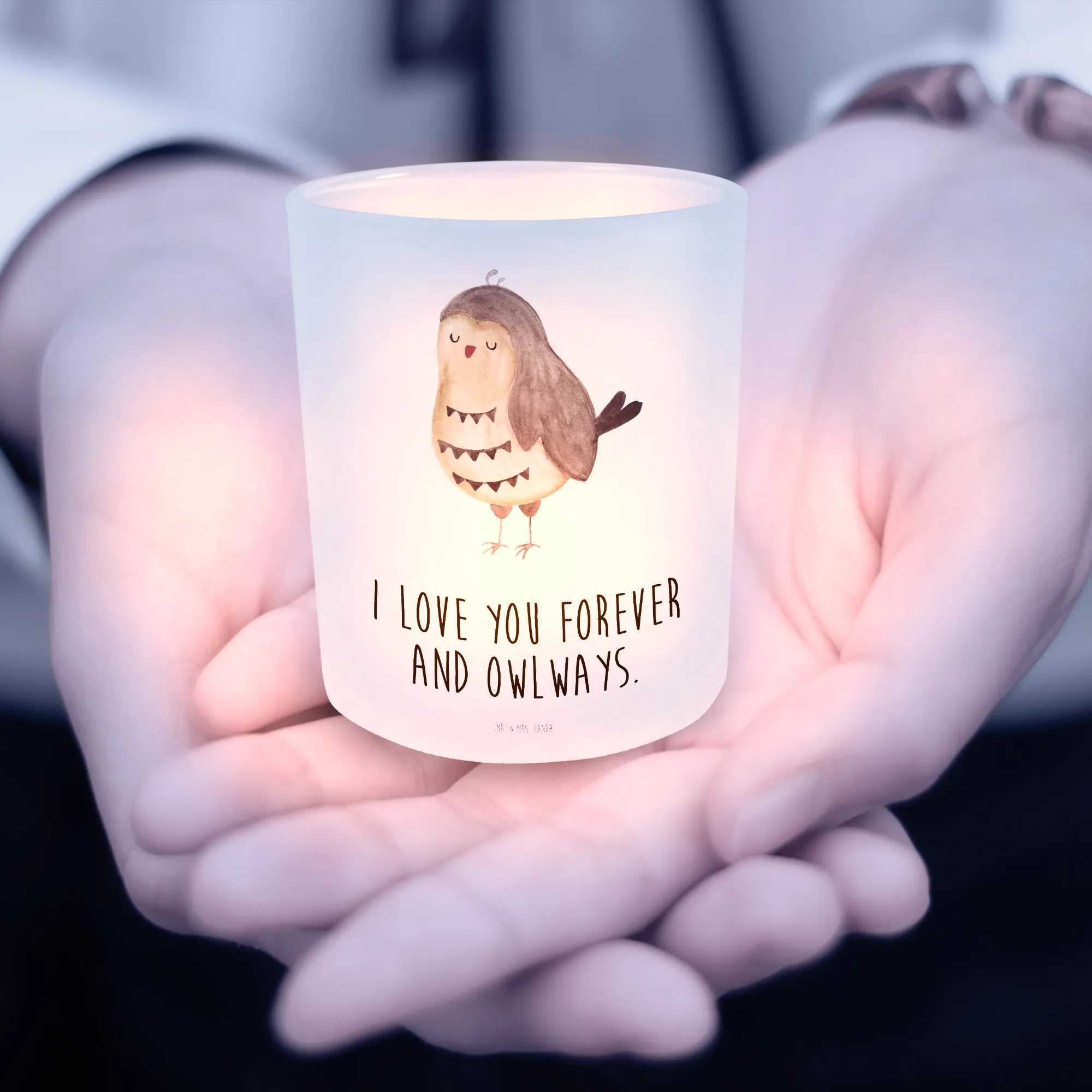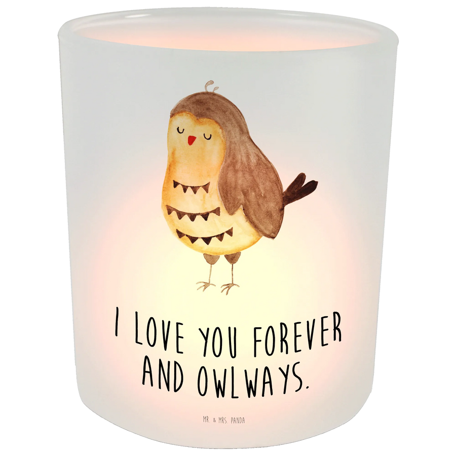 Entdecke das wunderschöne Windlicht "Eule Zufrieden" von Mr. & Mrs. Panda – ein perfektes Geschenk für alle Eulenliebhaber! Mit dem liebevoll gestalteten Spruch "I love you forever and owlways" zauberst du jedem ein Lächeln ins Gesicht. Ob als romantisches Geschenk zum Hochzeitstag, zur Verlobung oder einfach, um jemandem eine Freude zu machen – dieses Teelichtglas ist die optimale Wahl.