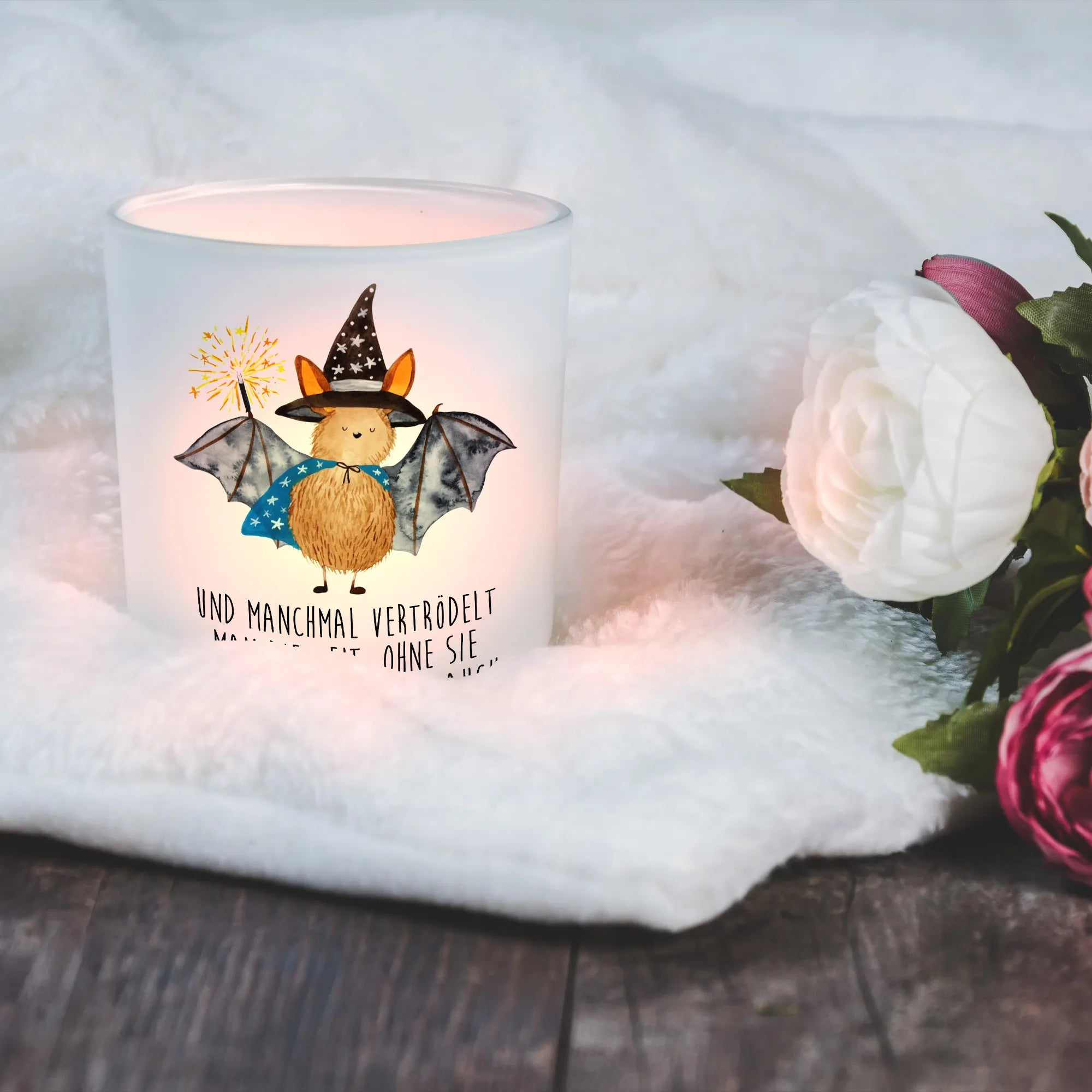 Das Windlicht Fledermaus Zauberer von Mr. & Mrs. Panda ist das perfekte Geschenk für alle, die ein Faible für Magisches und Mystisches haben! Wenn du auf der Suche nach einem einzigartigen Deko-Element bist, das nicht nur hübsch aussieht, sondern auch eine behagliche Atmosphäre schafft, bist du hier genau richtig. Dieses edle Windlicht aus satiniertem Glas wird mit einem bezaubernden Motiv einer kleinen Fledermaus geliefert, die auf einem Ast sitzt und mit einem Zauberstab in der Hand zaubert. Ideal für jeden Anlass, sei es für eine schaurig-schöne Halloween-Feier, eine Hochzeit oder einfach für dein gemütliches Zuhause. Es strahlt ein warmes Kerzenlicht aus und sorgt so für eine romantische Stimmung, die jede Nacht in etwas Besonderes verwandelt. Ob du es für dich selbst kaufst oder es als Geschenk für Freunde und Familie auswählst, dieses Windlicht wird mit Sicherheit überall für gute Laune und zahlreiche bewundernde Blicke sorgen.