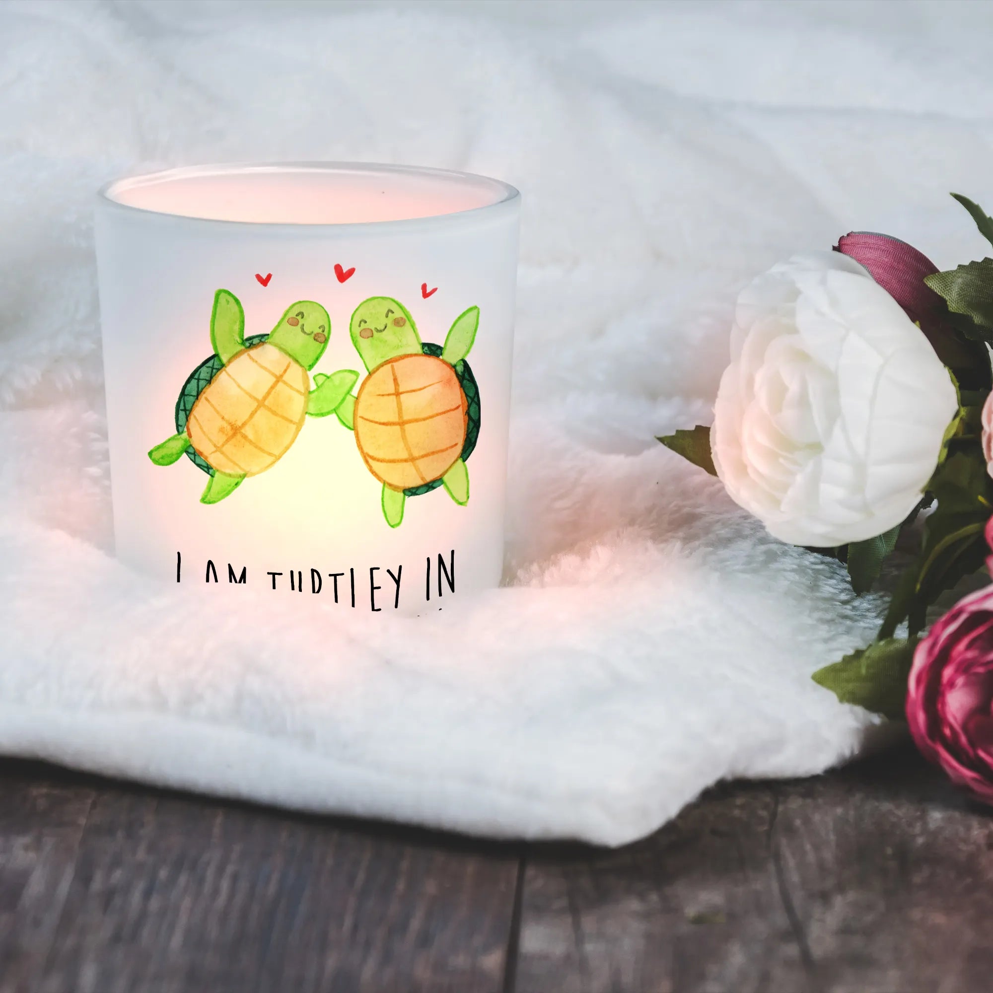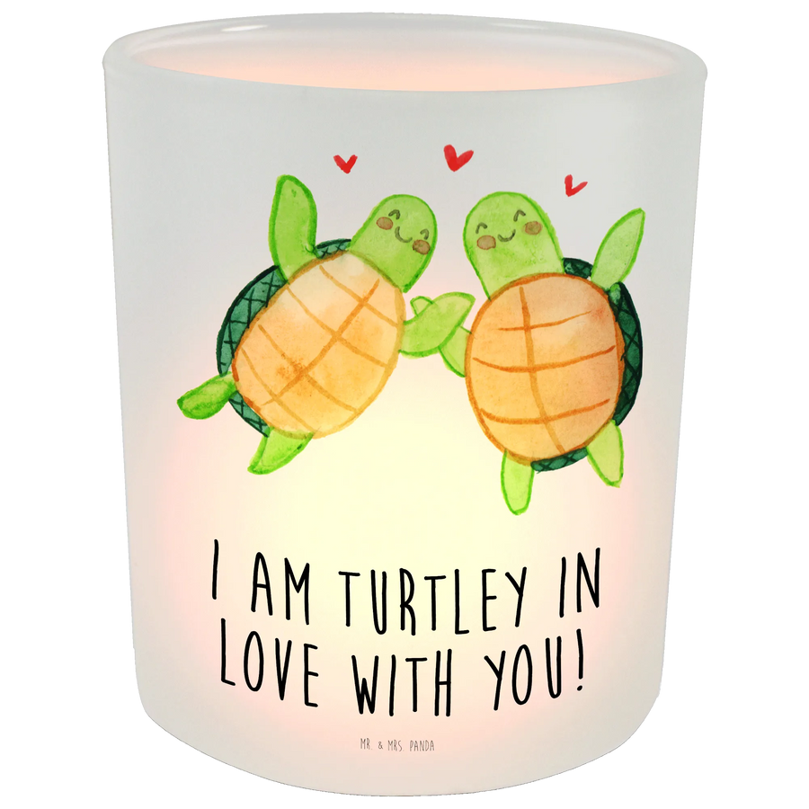 Das Windlicht mit dem niedlichen Schildkröten Paar von Mr. & Mrs. Panda ist das perfekte Geschenk für Verliebte. Wenn du nach einer liebevollen Art suchst, deine Gefühle auszudrücken, dann ist dieses Teelichtglas genau das Richtige. Mit dem charmanten Motto "I am turtley in love with you!" bringt es nicht nur Licht in dein Zuhause, sondern auch Herz und Wärme. Egal ob für den Valentinstag, den Hochzeitstag oder deinen Jahrestag, dieses Windlicht sorgt für eine romantische Atmosphäre, die eure Liebe symbolisiert.