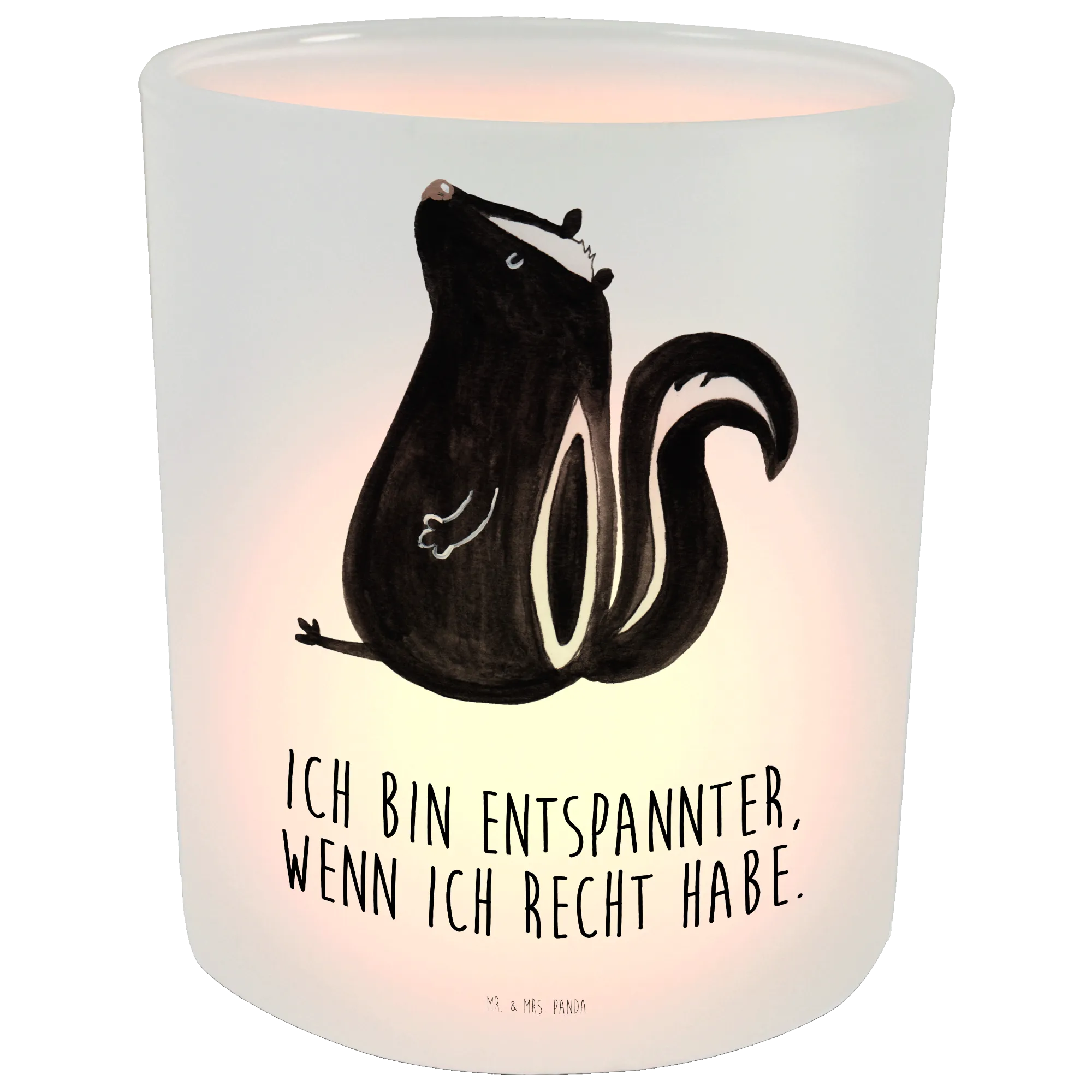 Lass dich von unserem bezaubernden Windlicht "Stinktier sitzend" aus der Stinktier-Kollektion verzaubern! Dieses wunderschöne edle Windlicht aus satinierter Glas ist nicht nur ein Blickfang in jedem Raum, sondern spendet auch eine gemütliche und romantische Stimmung, perfekt für entspannte Abende. Dekoriert mit einem niedlichen, handgezeichneten Stinktier, lädt es zum Träumen und Verweilen ein.