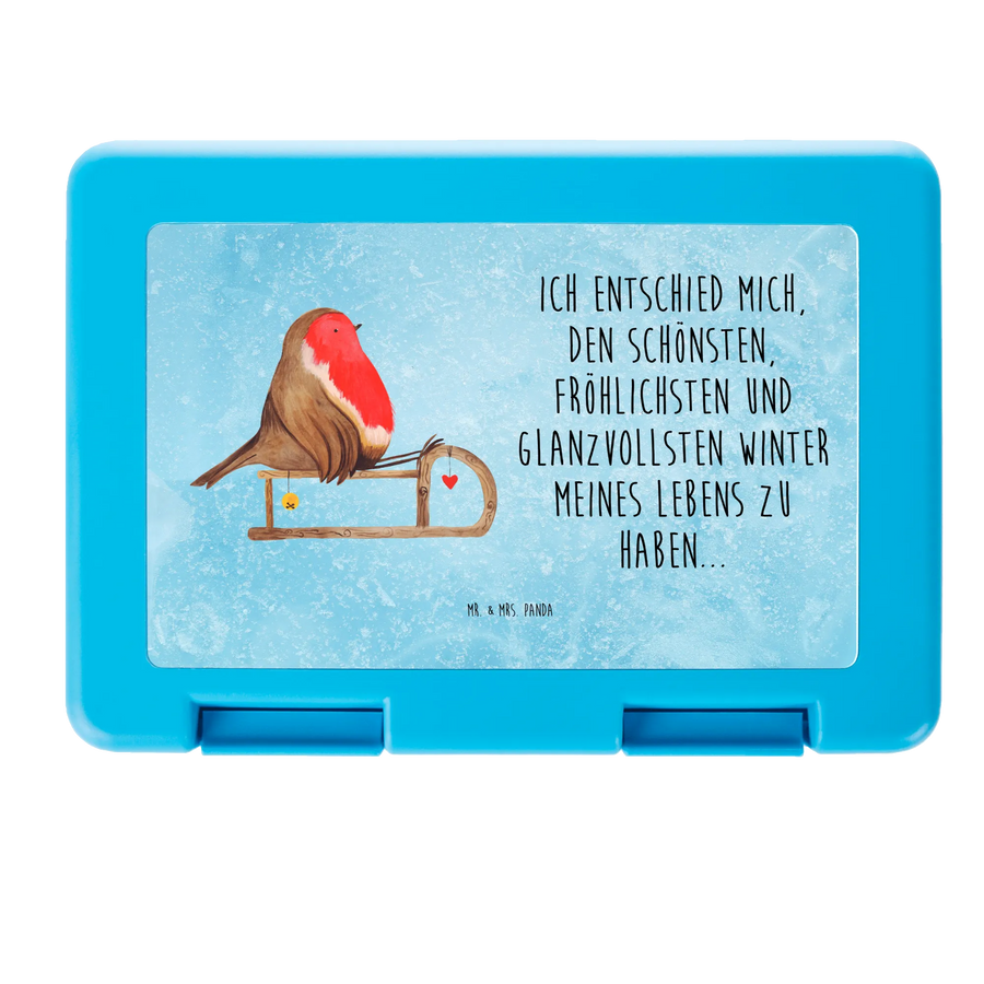Brotdose Rotkehlchen Schlitten - mit Spruch - Eisblau