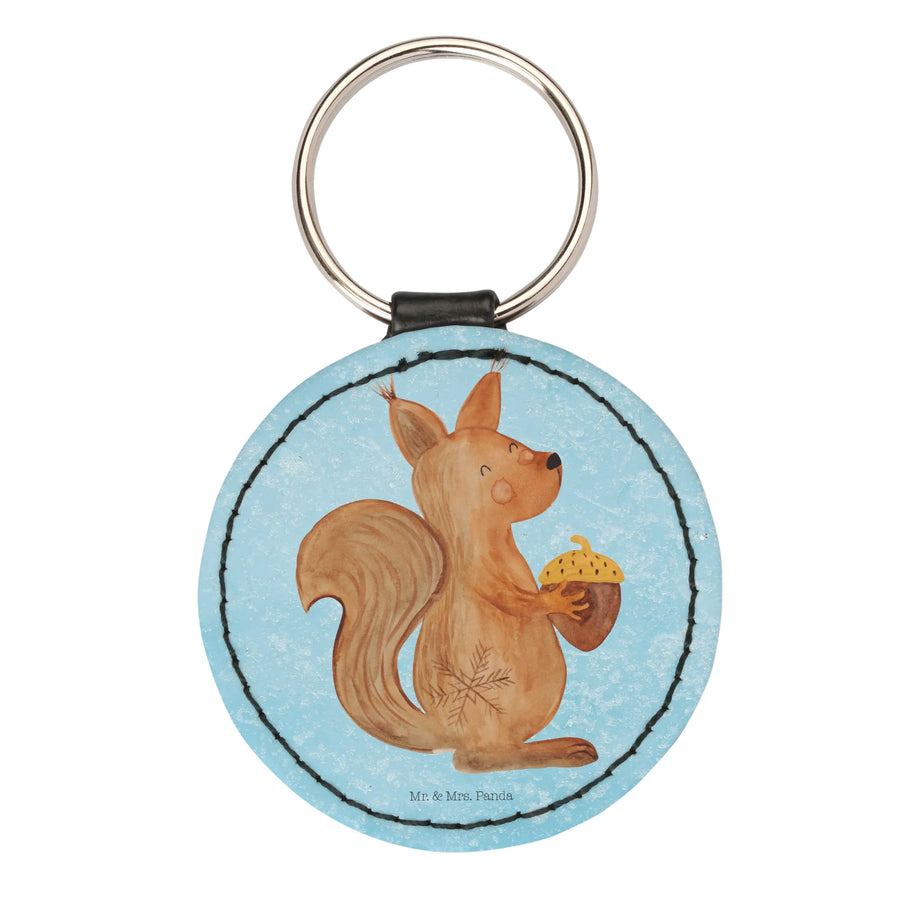 Rund Schlüsselanhänger Eichhörnchen Weihnachtszeit - Eisblau