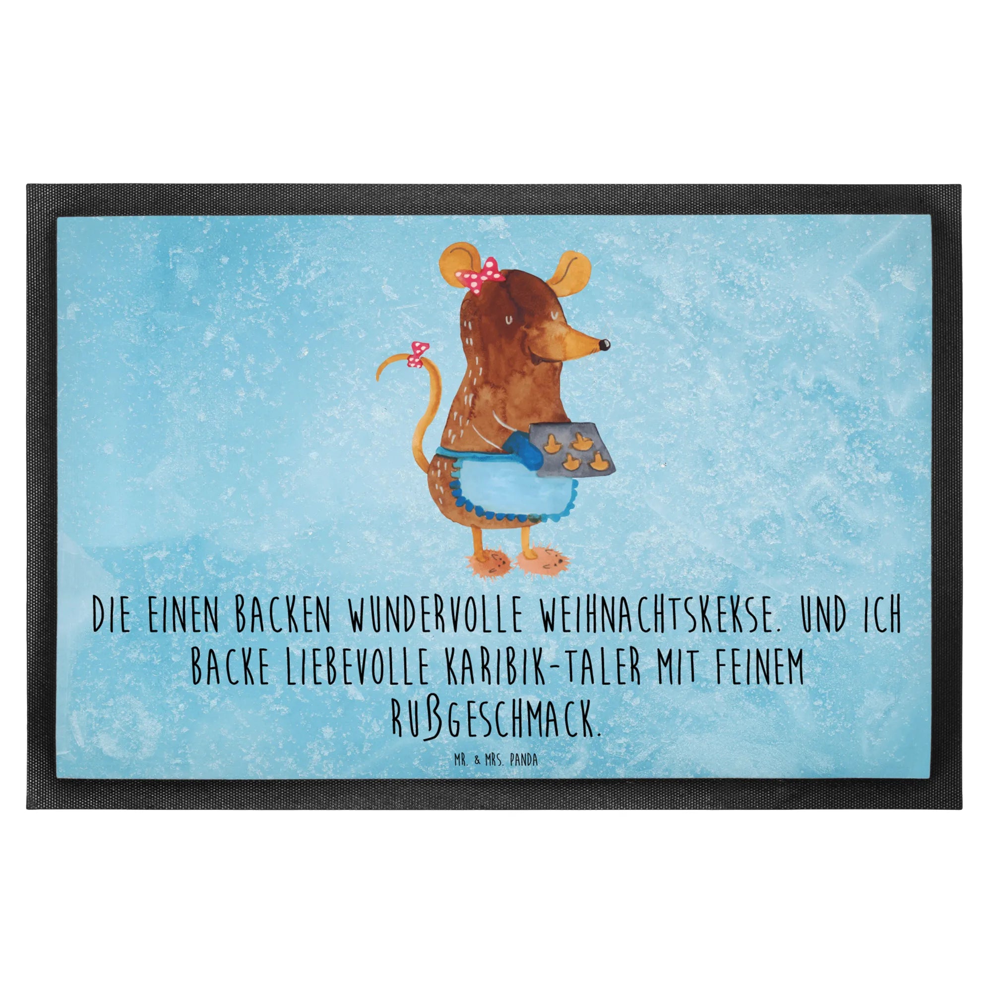 In der Winter Kollektion von Mr. & Mrs. Panda dreht sich alles um die besten Momente der kalten Jahreszeit. Die kleine Maus lädt Dich ein, Deine eigenen Kekse zu backen und sorgt mit ihrem charmanten Spruch: "Die einen backen wundervolle Weihnachtskekse. Und ich backe liebevolle Karibik-Taler mit feinem Rußgeschmack." für fröhliche Stimmung und weihnachtliche Freude. Egal, ob Du die Fußmatte selbst nutzt oder sie verschenken möchtest, sie ist ein hervorragendes Geschenk zu Weihnachten, Nikolaus oder auch als Adventsüberraschung.