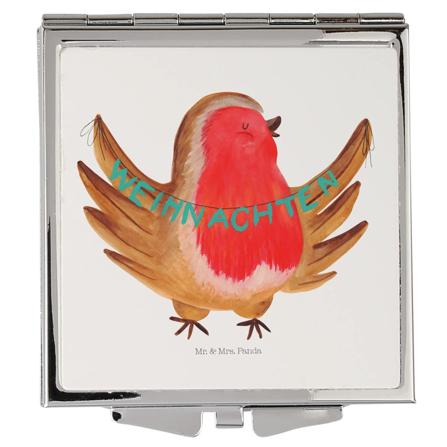 Handtaschenspiegel quadratisch Rotkehlchen Weihnachten - ohne Spruch - Weiß