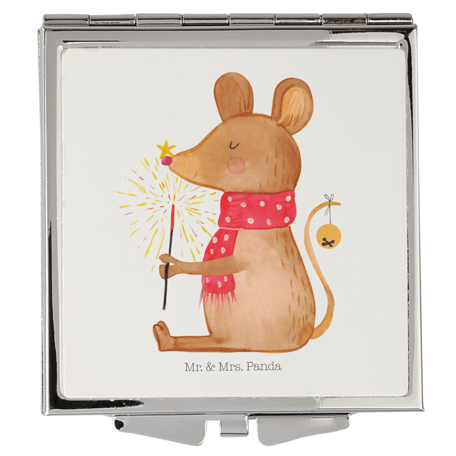 Handtaschenspiegel quadratisch Maus Weihnachten - ohne Spruch - Weiß