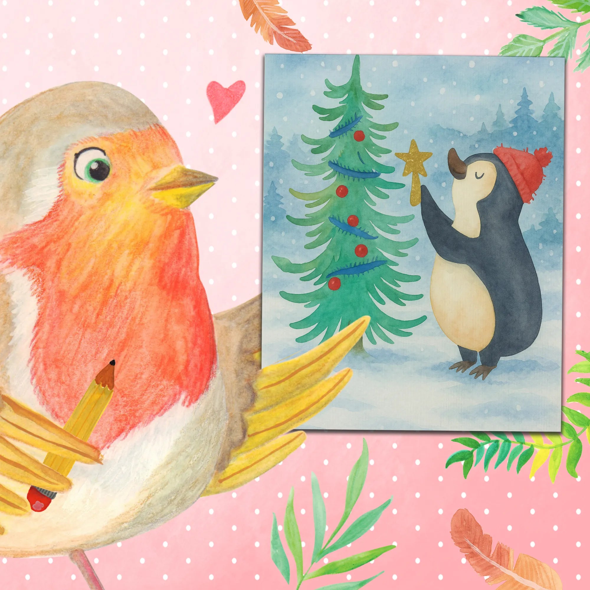 Die Winter Kollektion von Mr. & Mrs. Panda verzaubert mit handgezeichneten Aquarell-Motiven von Mrs. Panda. Hier findest du liebevolle Motive wie Rotkehlchen, Weihnachtsmaus und natürlich unseren Pinguin, die zusammen die schönste Zeit des Jahres feiern.