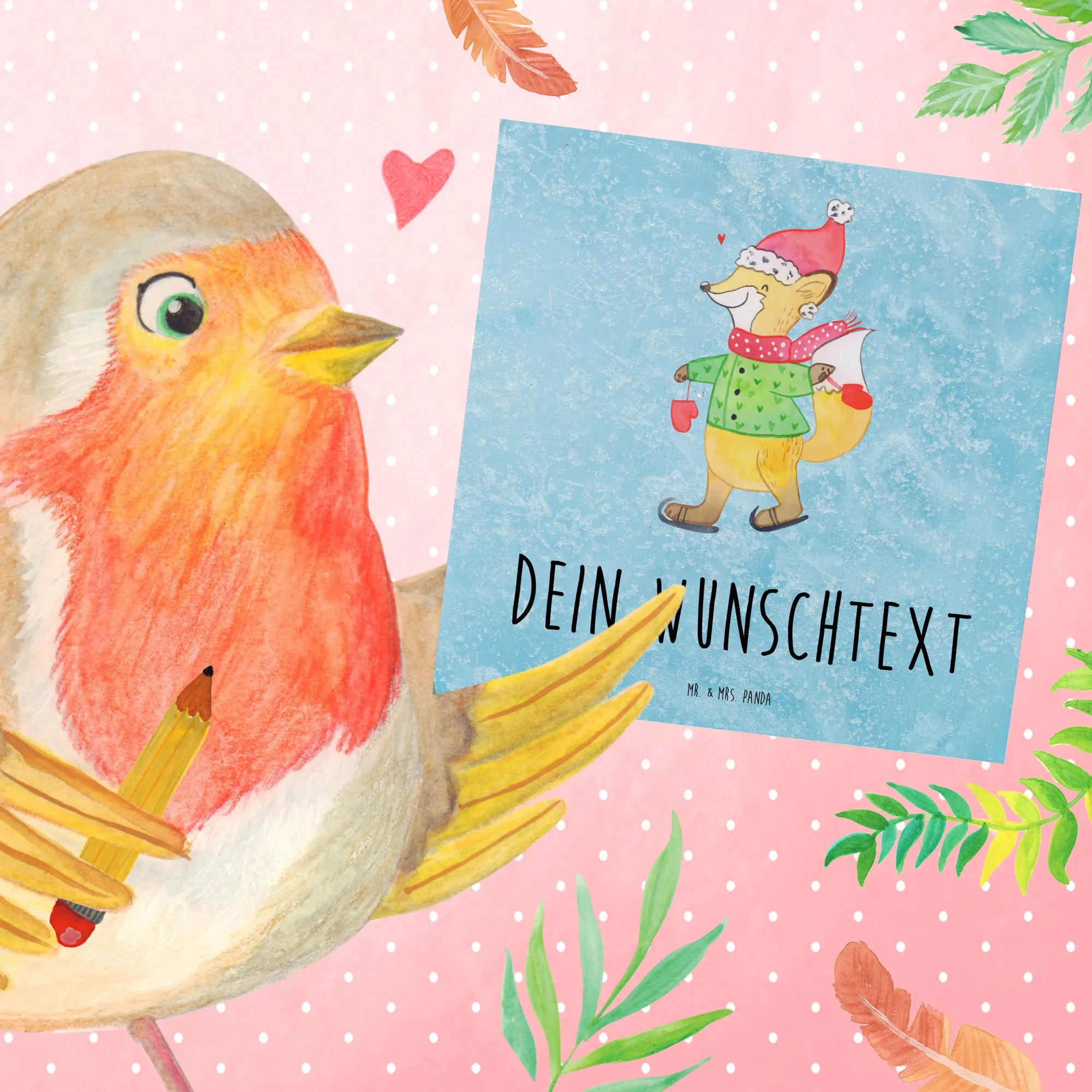 Die Winter Kollektion von Mr. & Mrs. Panda verkörpert die schönen Seiten der winterlichen Zeit und bringt die Magie der Feiertage direkt zu dir nach Hause. Das Motiv des Fuchses in Schlittschuhen begeistert Jung und Alt und lässt alle Herzen höher schlagen. Verleihe deinen Botschaften eine persönliche Note und mache jeden Anlass zu etwas ganz Besonderem. Denn Weihnachten wäre noch viel schöner, wenn nicht überall Rosinen drin wären! Mit dieser personalisierten Karte ist dein Gruß einfach unvergesslich!