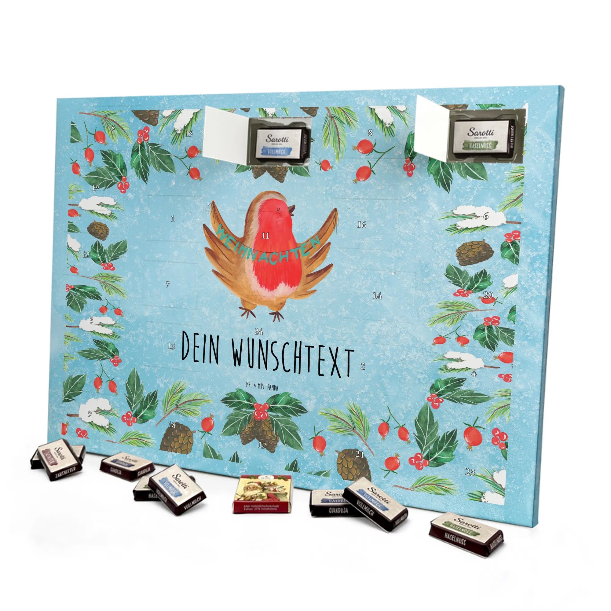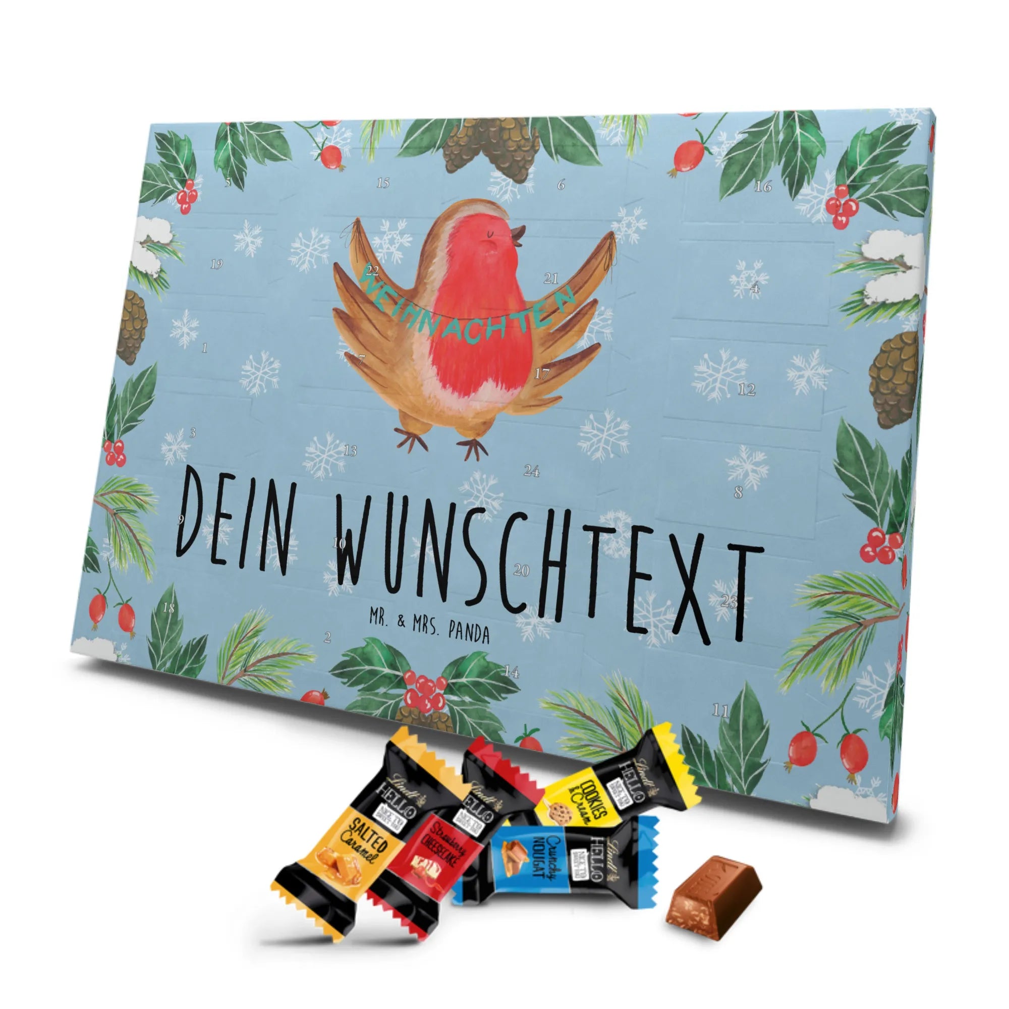 Personalisierter Schoko Adventskalender Rotkehlchen Weihnachten - Lindt LINDOR - Eisblau
