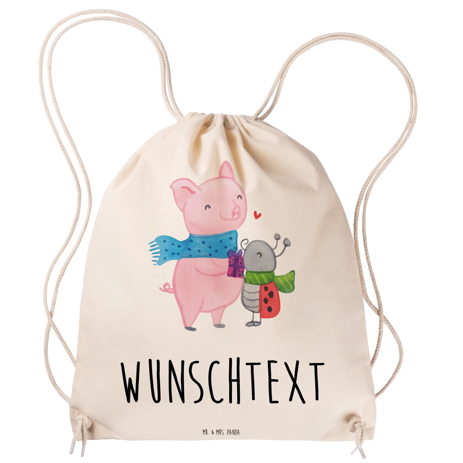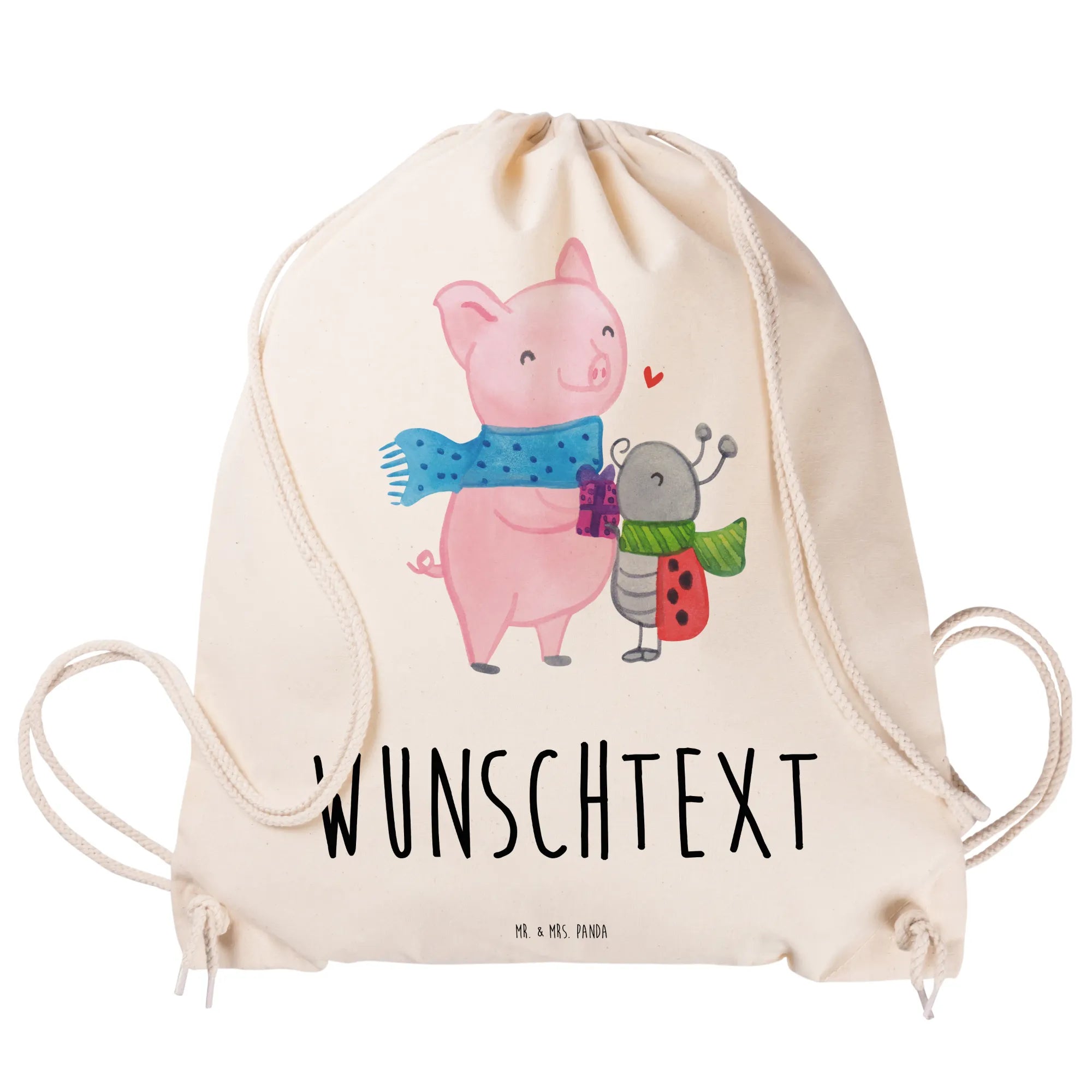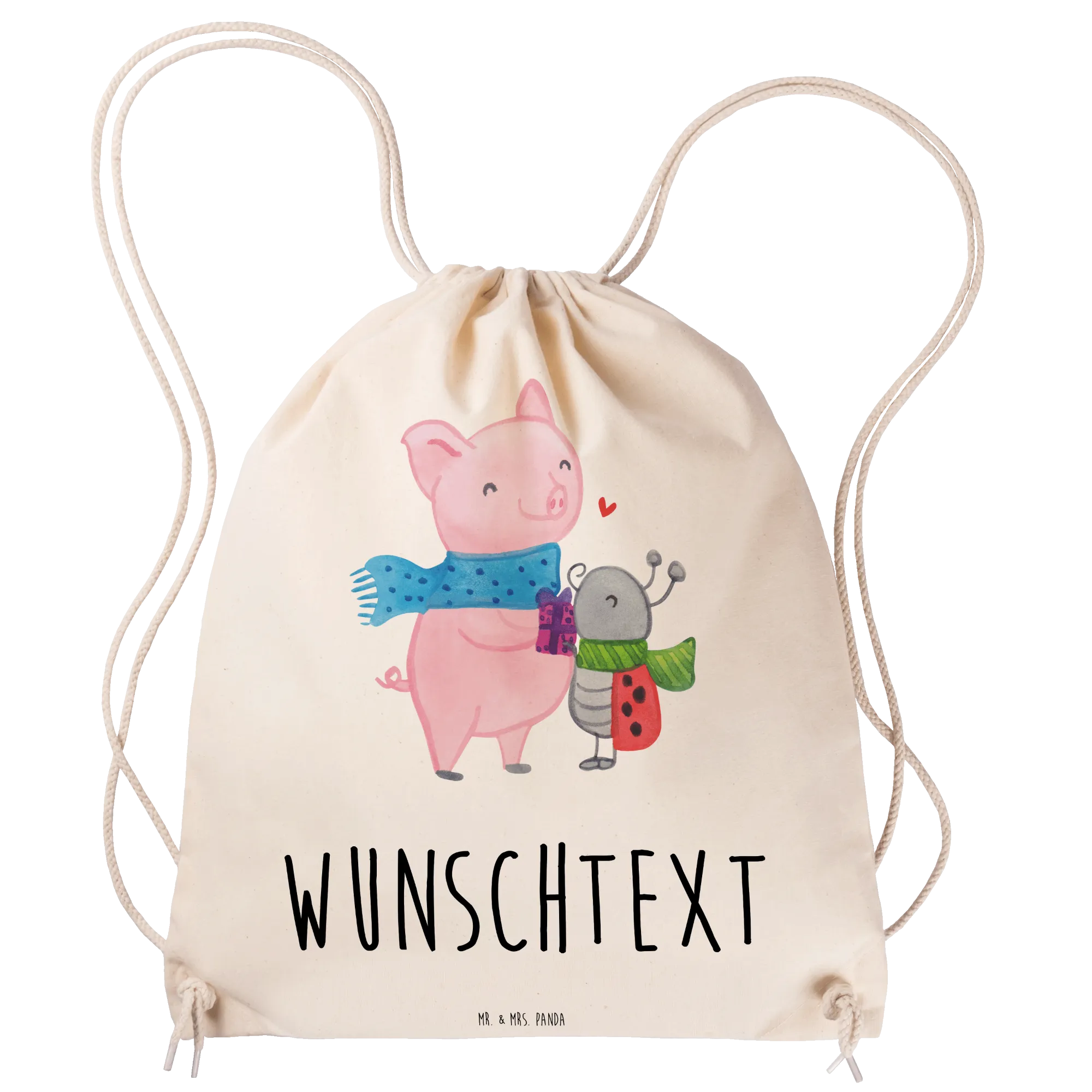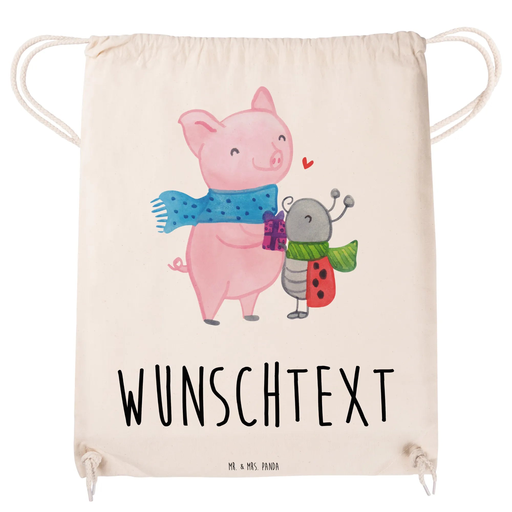Der personalisierte Sportbeutel mit dem süßen Glühschwein Smörle aus der Winter Kollektion von Mr. & Mrs. Panda ist das perfekte Geschenk für alle, die die kalte Jahreszeit lieben und Freude an kreativen, einzigartigen Designs haben!