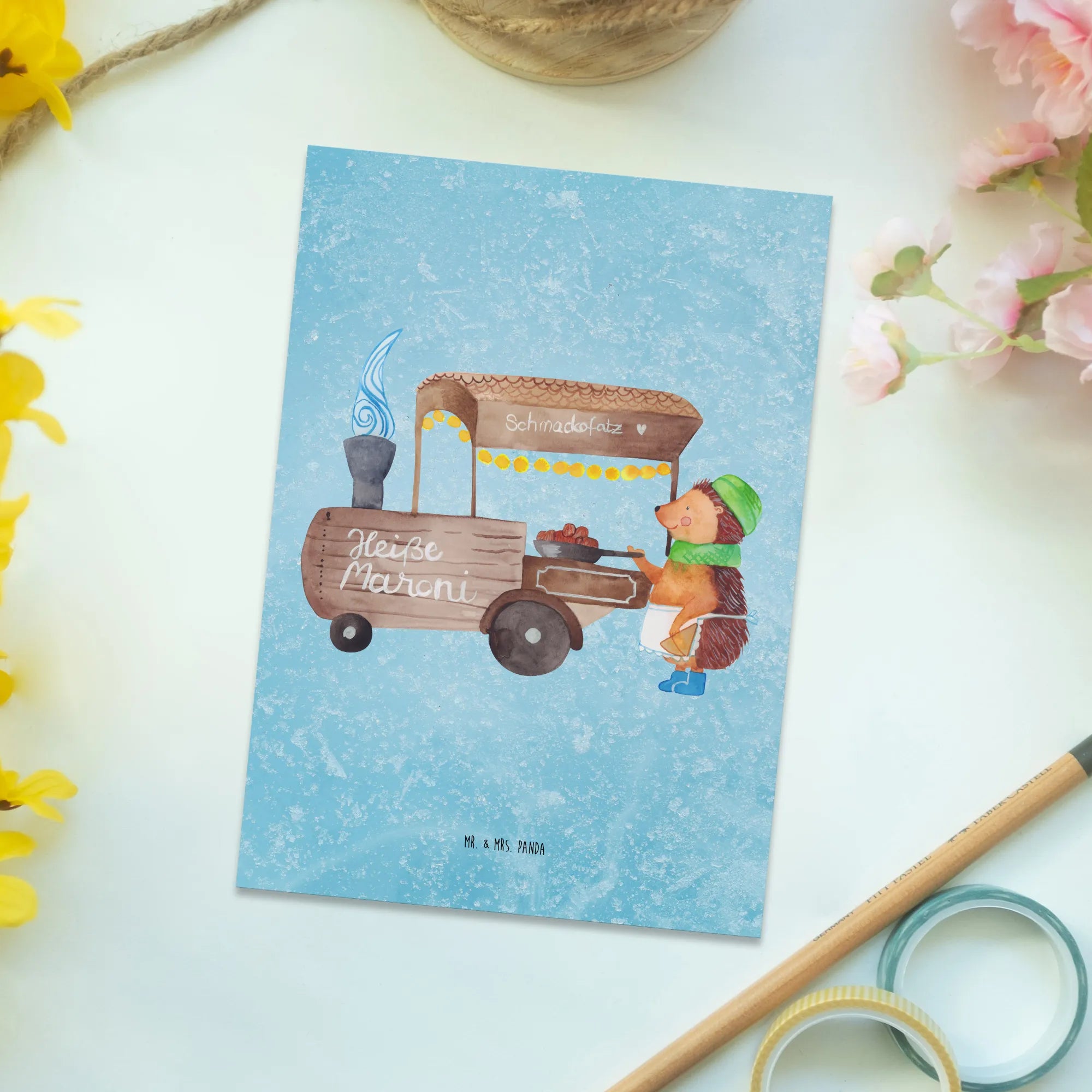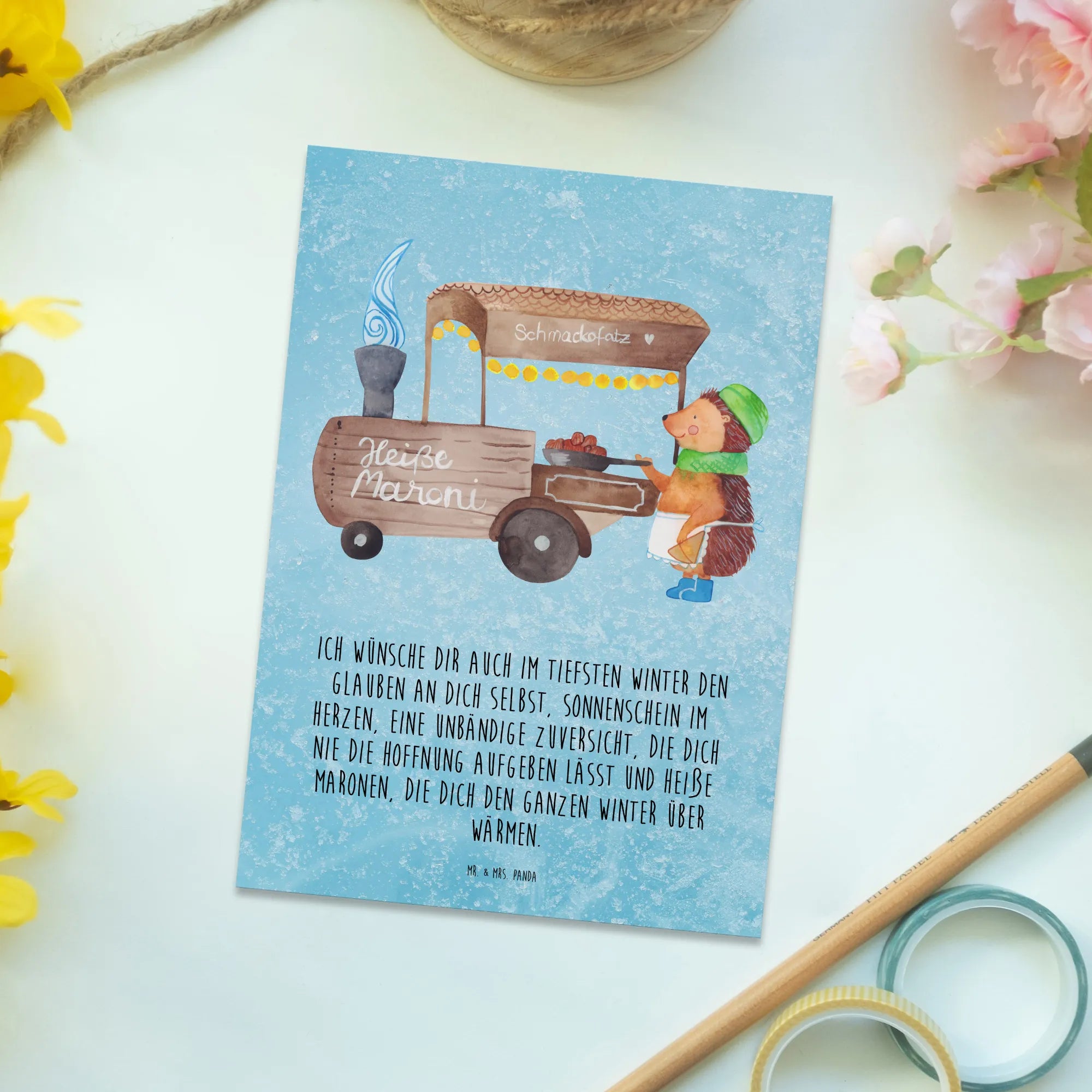 Postkarte Igel Maronen - mit Spruch - Eisblau