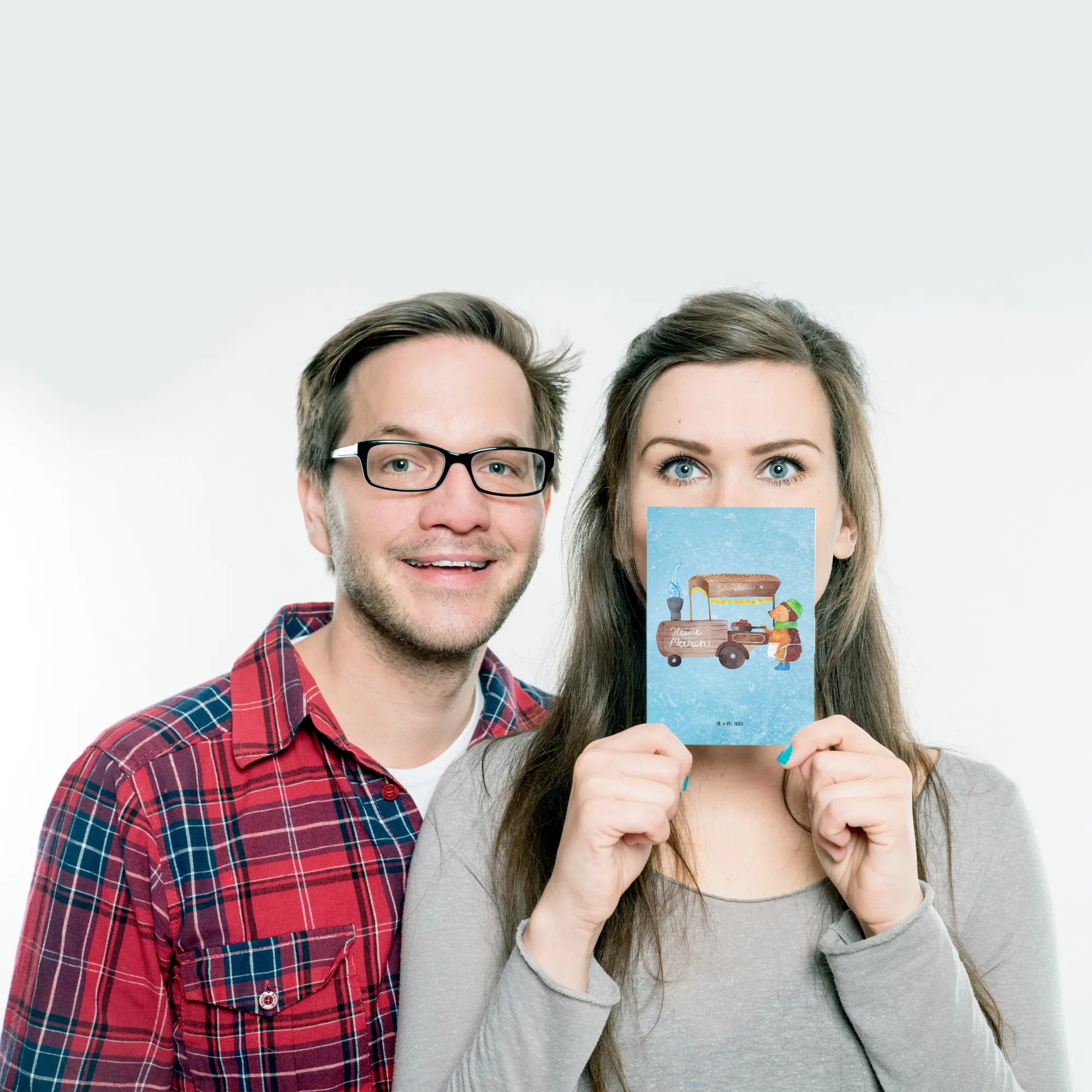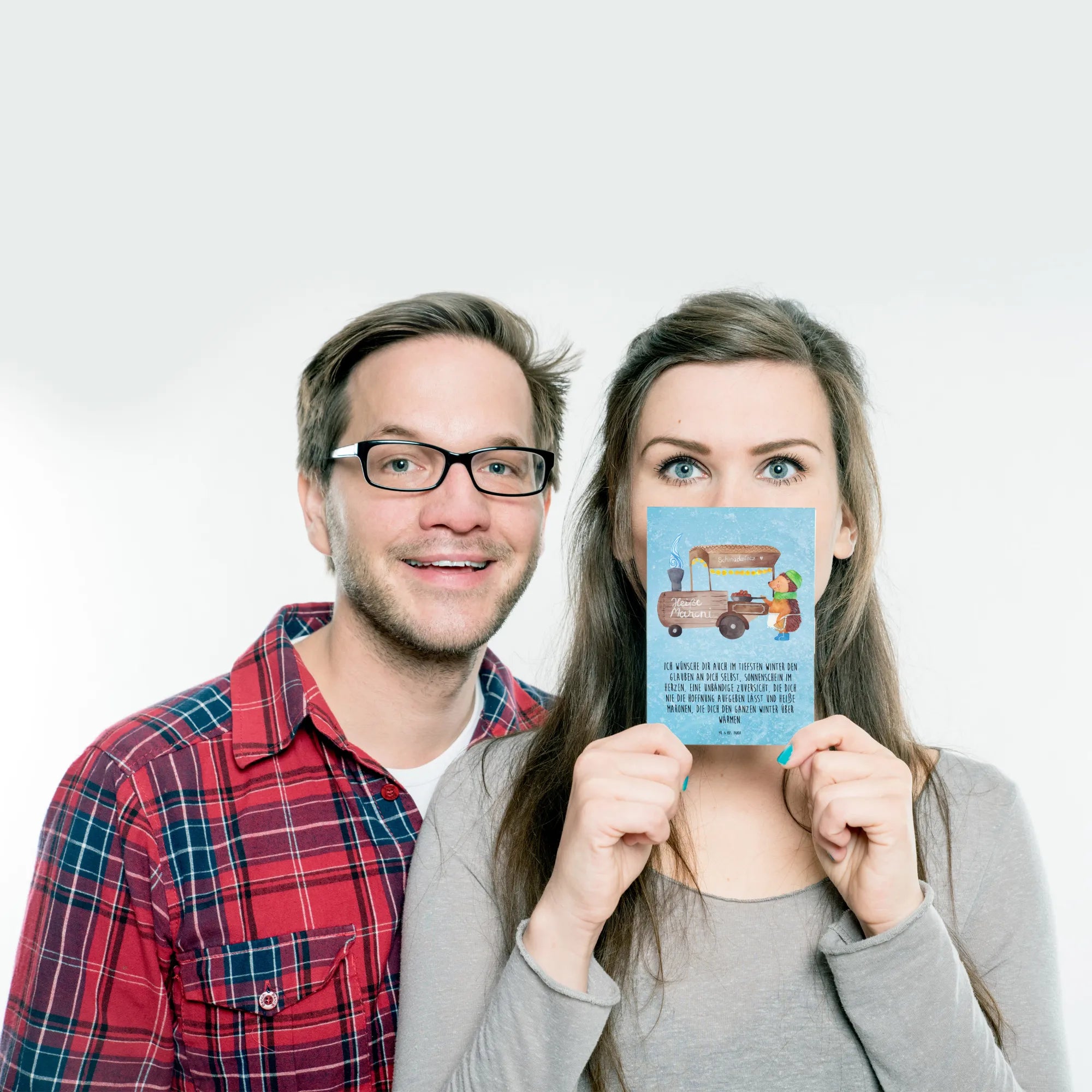 Die bezaubernde Postkarte mit dem hübschen Igel-Motiv aus der Winter Kollektion von Mr. & Mrs. Panda ist das perfekte Geschenk für jeden, der die Winterzeit liebt! Sie zeigt einen niedlichen Igel in blauen Stiefeln und einem grünen Schal, der am Verkaufsstand für heiße Maronen steht. Diese Karte verkörpert die Gemütlichkeit und die herrlichen Traditionen, die wir mit dieser zauberhaften Jahreszeit verbinden.