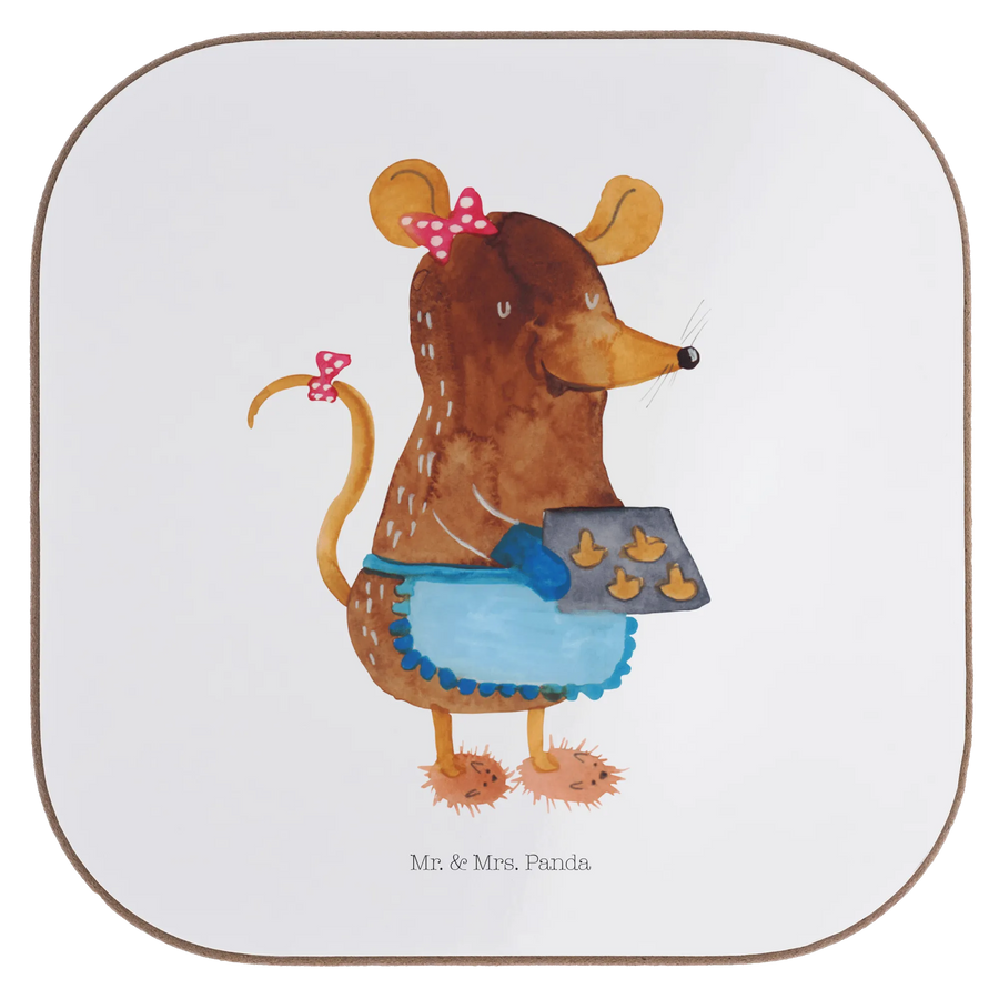 Quadratische Untersetzer Maus Kekse - ohne Spruch - Weiß
